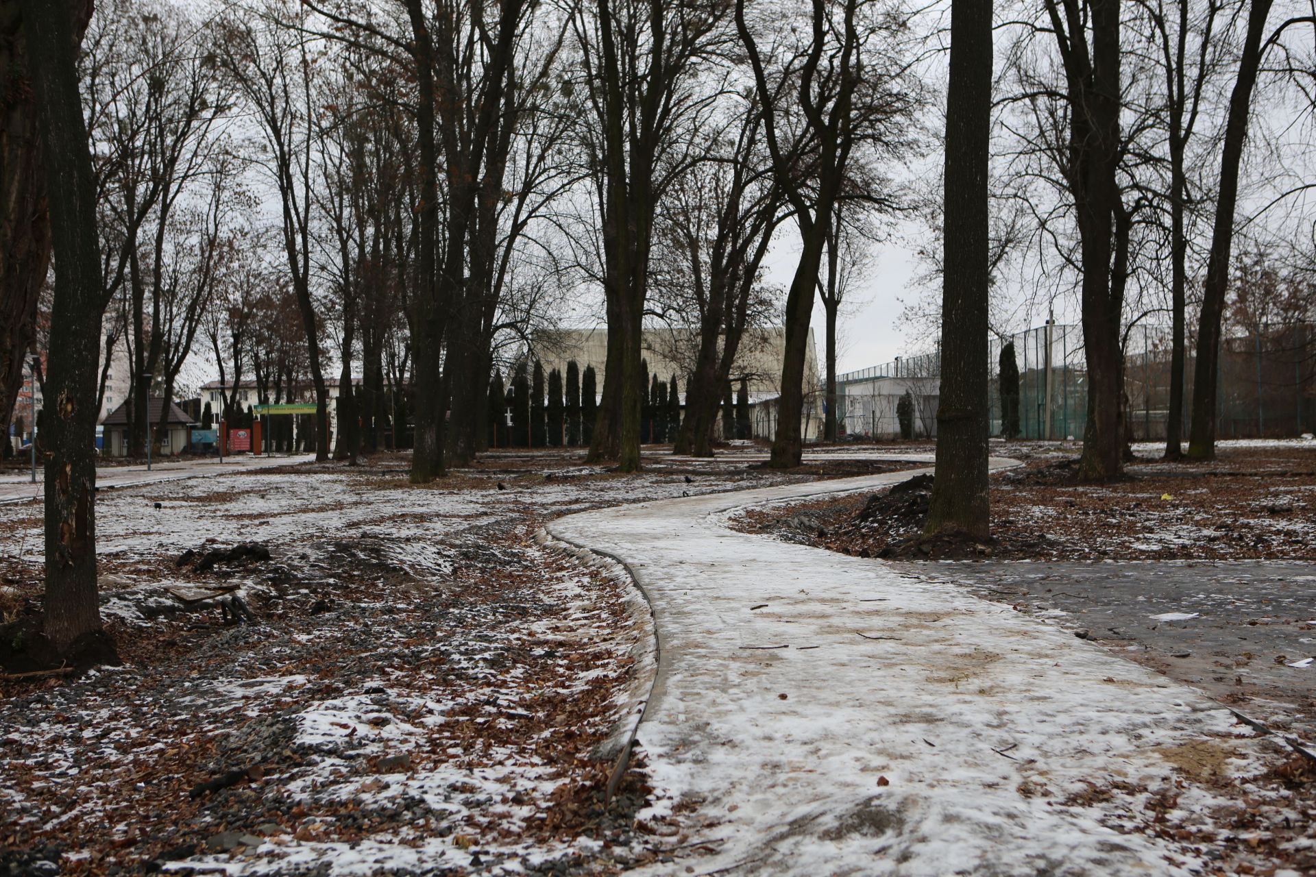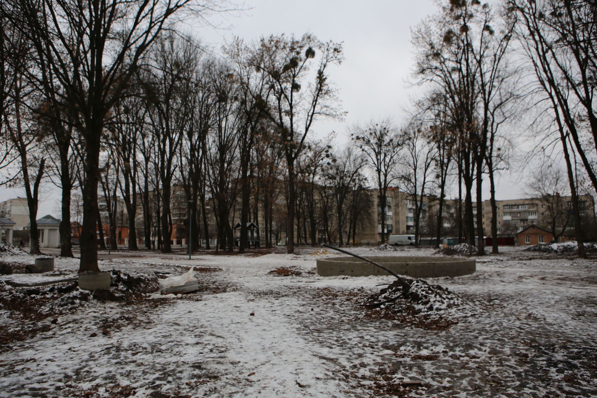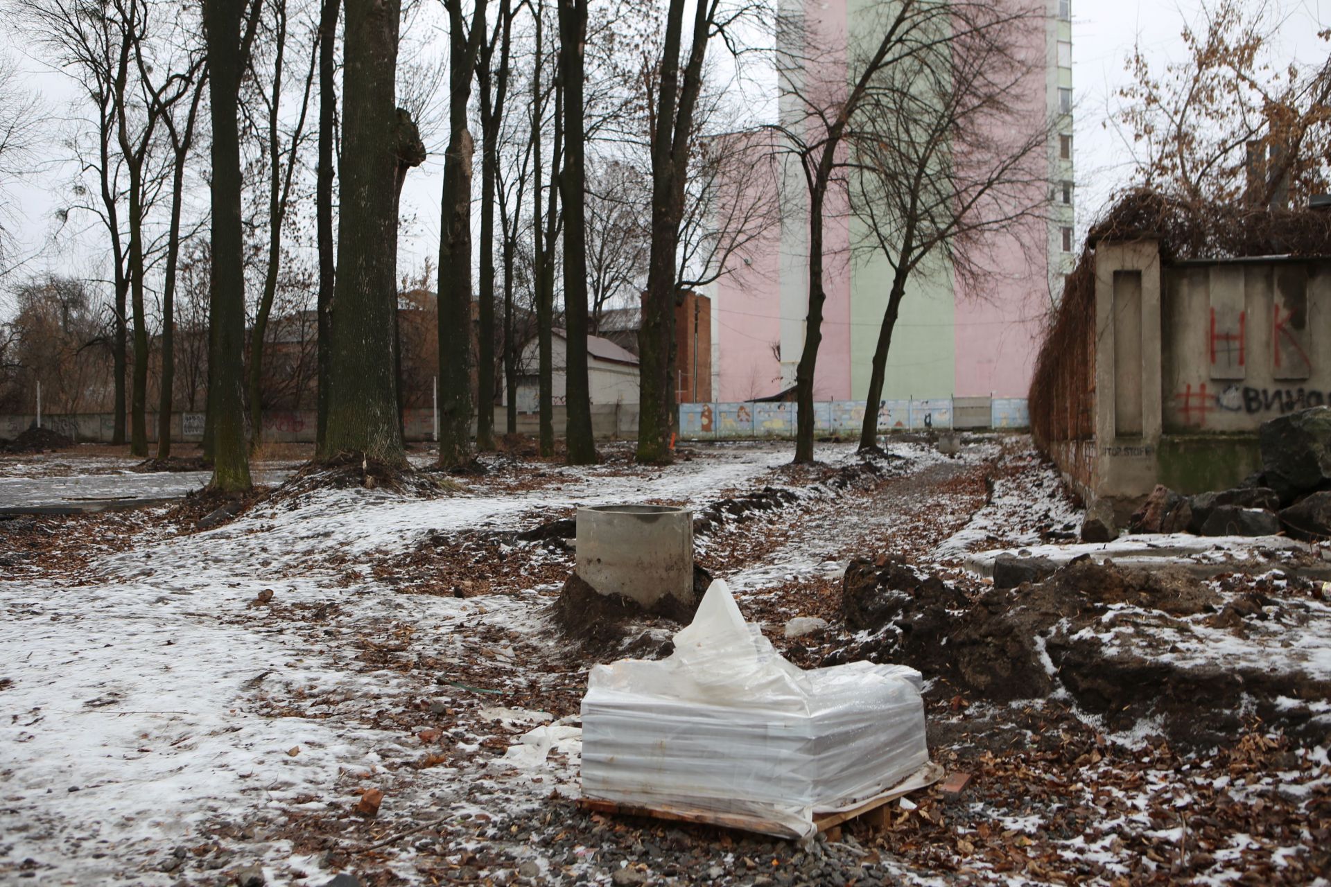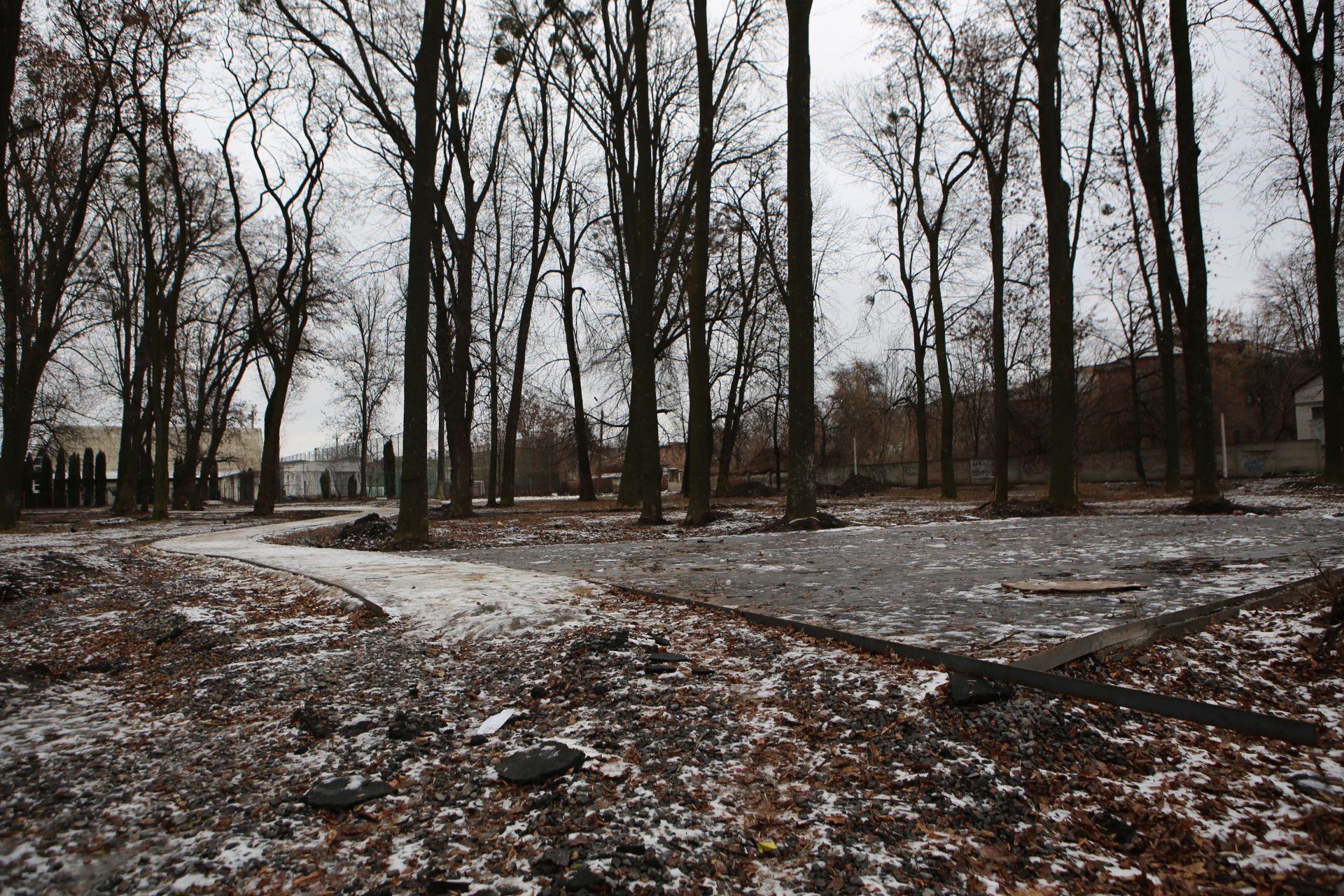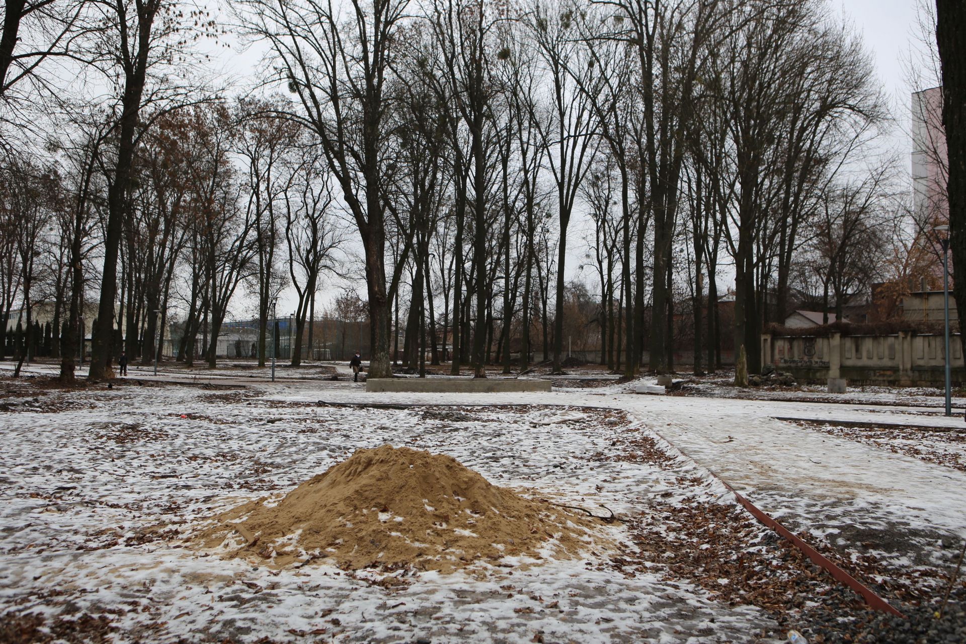 Станом на 14 січня на території парку ми помітили лише натяк на продовження робіт у цьому місяці: кілька куп з будівельними матеріалами (піском та щебенем). Однак «свіжих» слідів від робіт будівельників — немає.