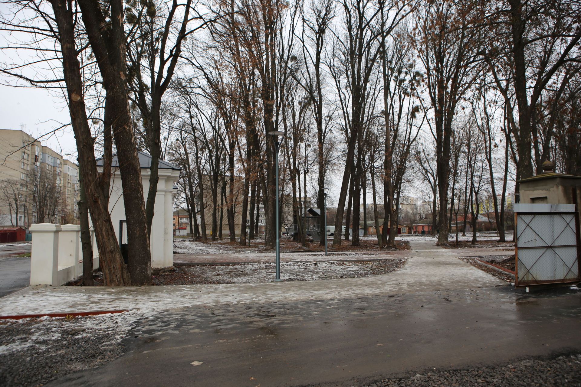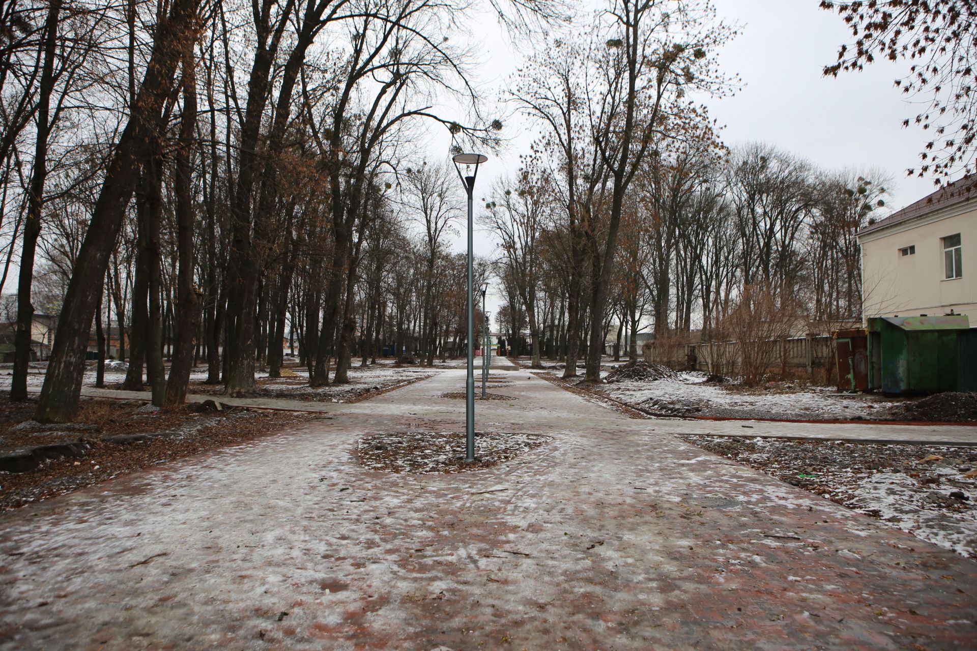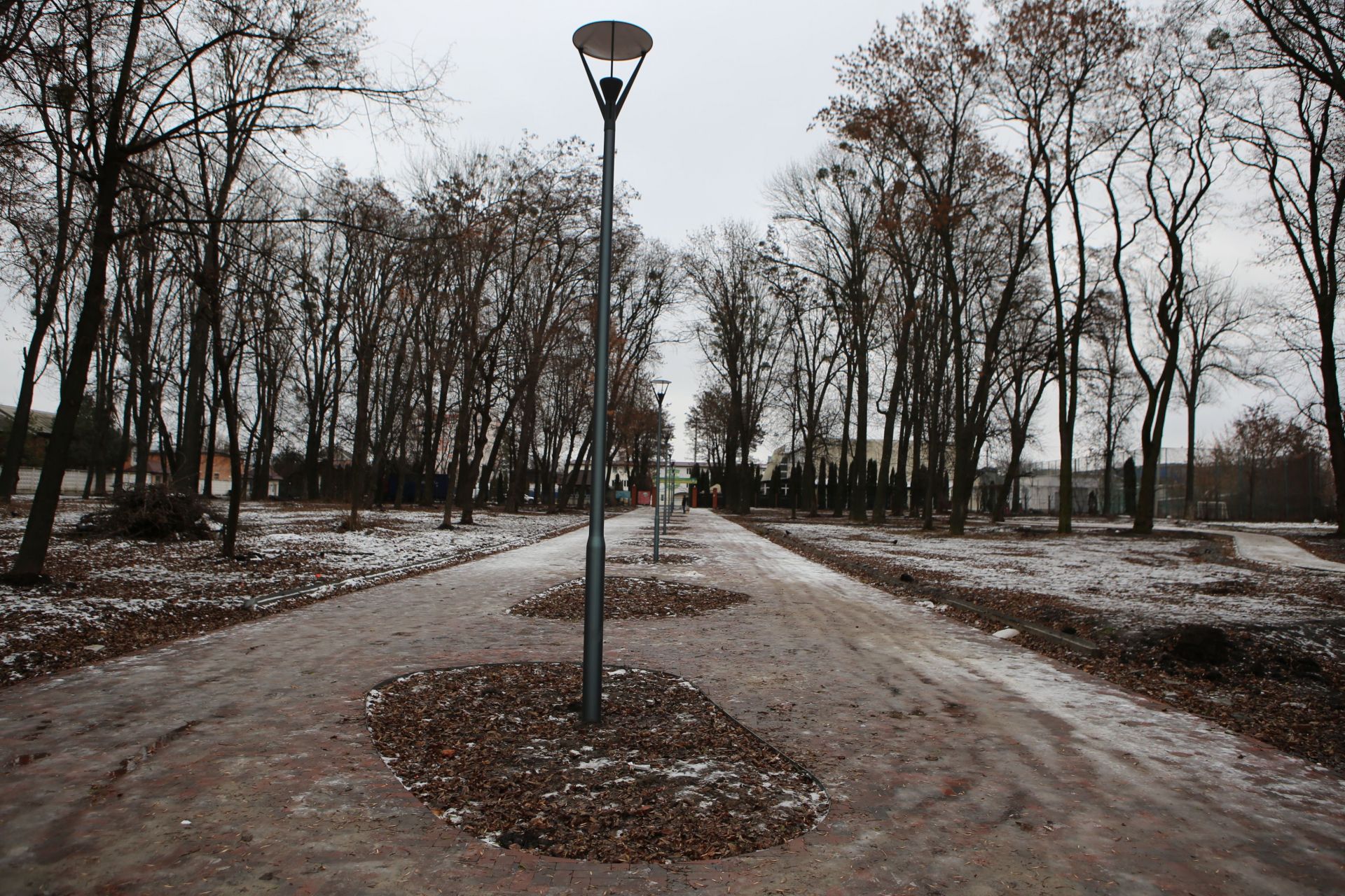 Станом на 14 січня у парку викладені плиткою алеї, щоправда, деякі бічні доріжки зроблені ще не до кінця.