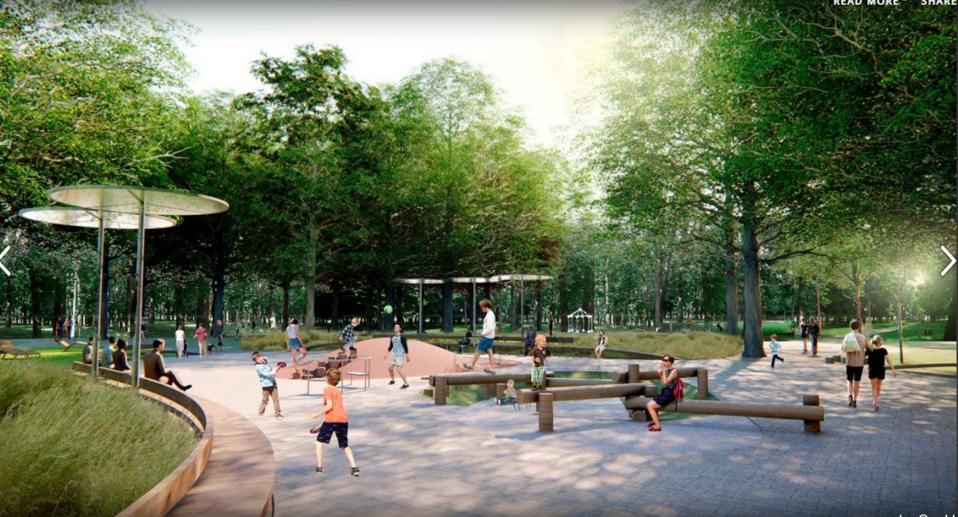 Як ми знаємо за тендером, тут мають облаштувати: освітлення, 20 камер відеоспостереження, 88 лавок і велопарковку. Ще поставити нові дитячі, спортивні майданчики; облаштувати зону для вигулу собак, громадську вбиральню.