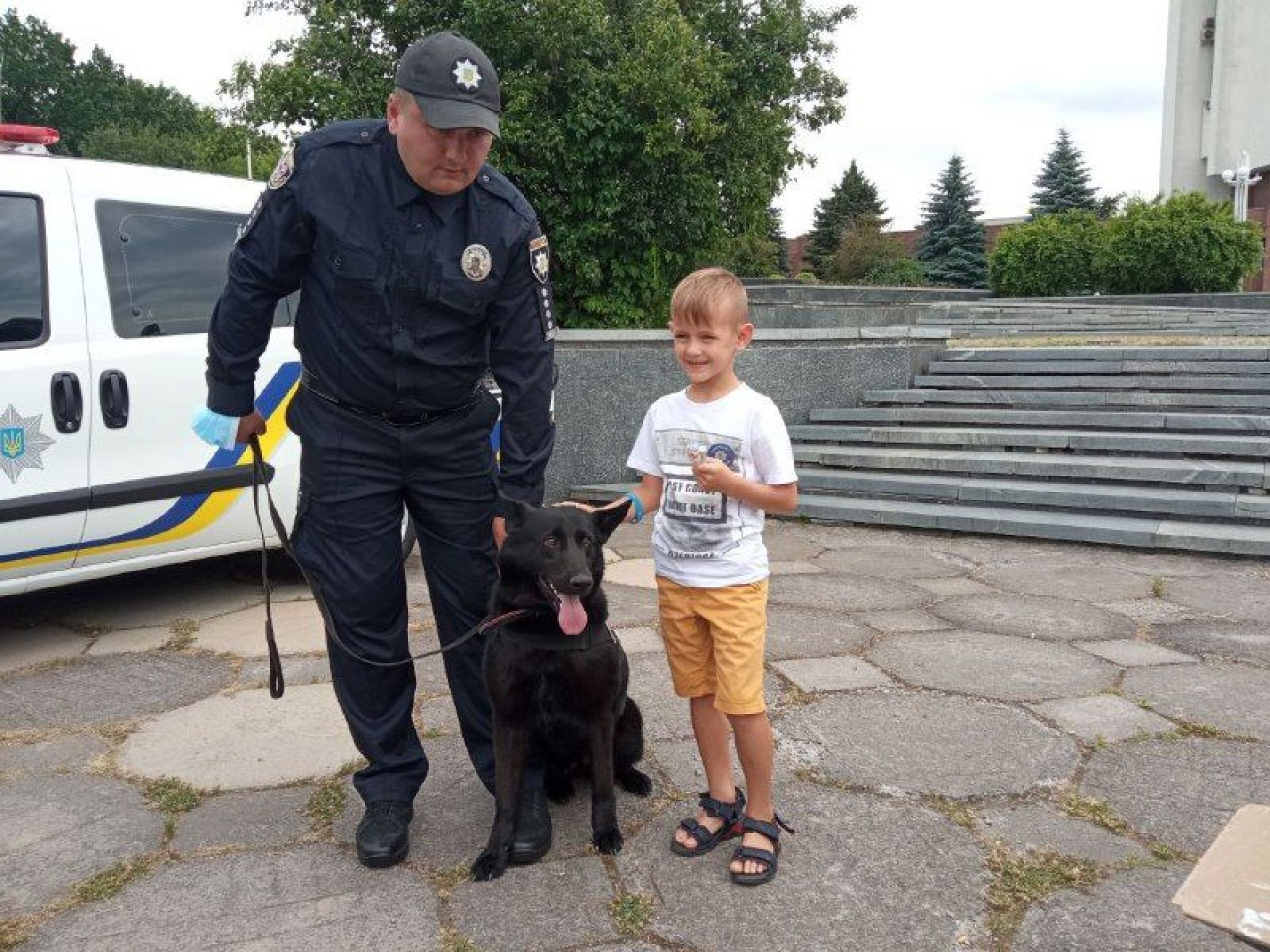 На свято завітав і чотирилапий працівник поліції. Німецьку вівчарку швидко вподобали вінничани, але сама вона до такої надмірної уваги готова не була.