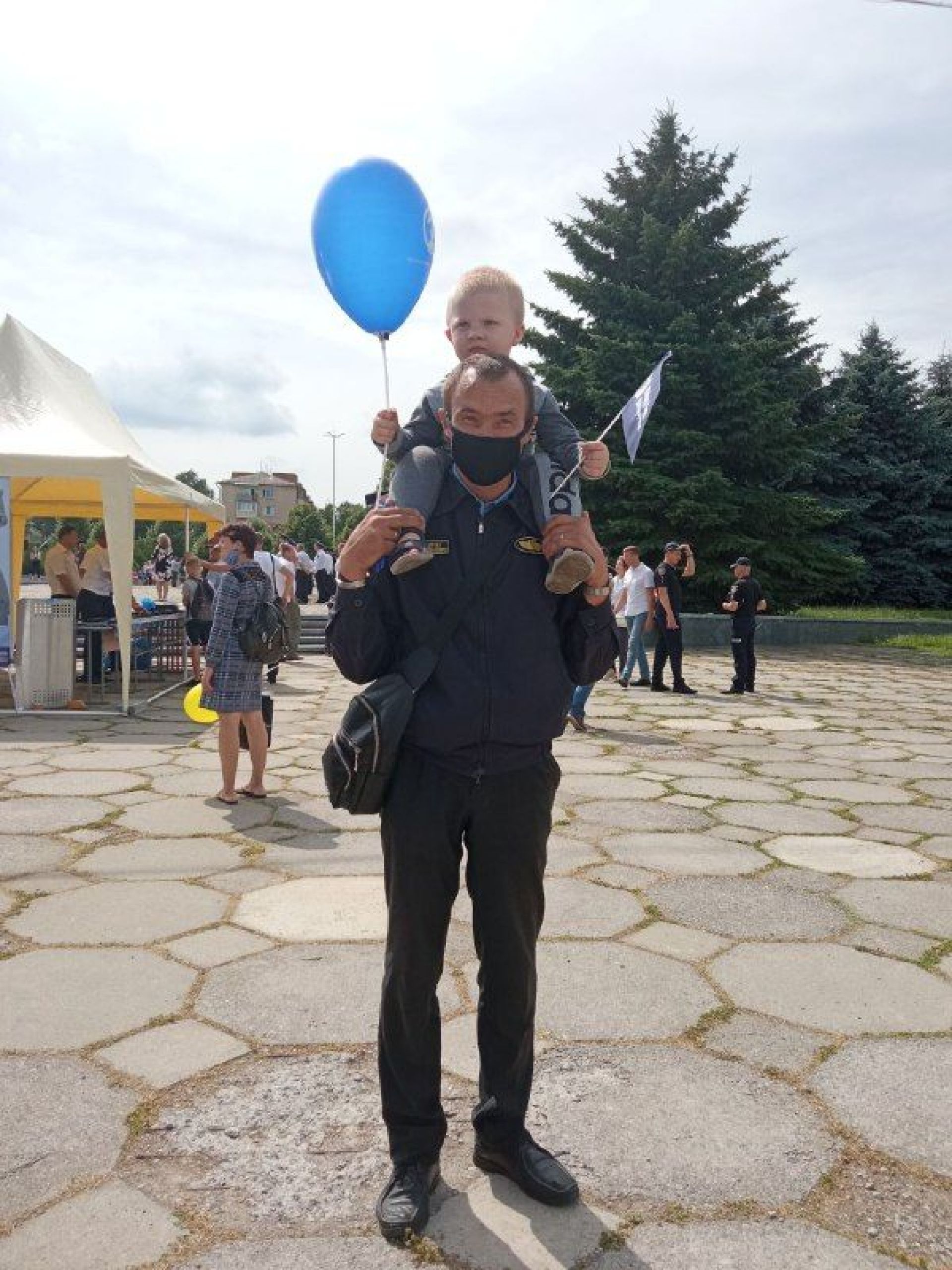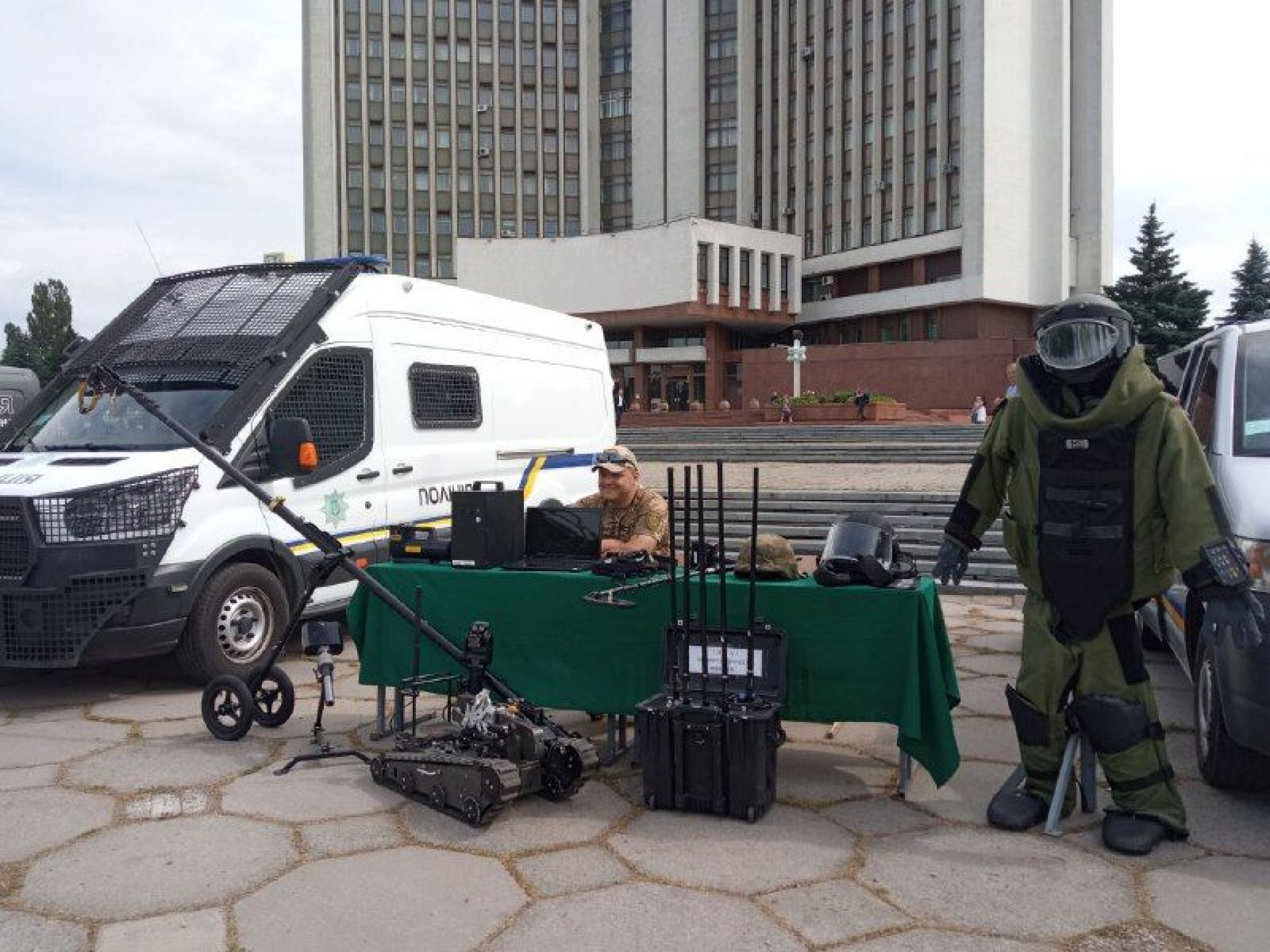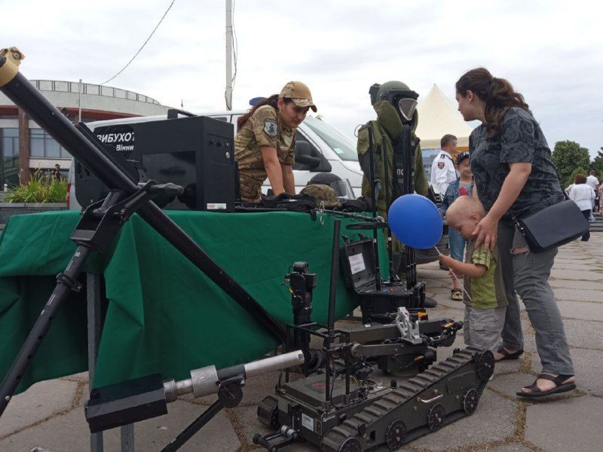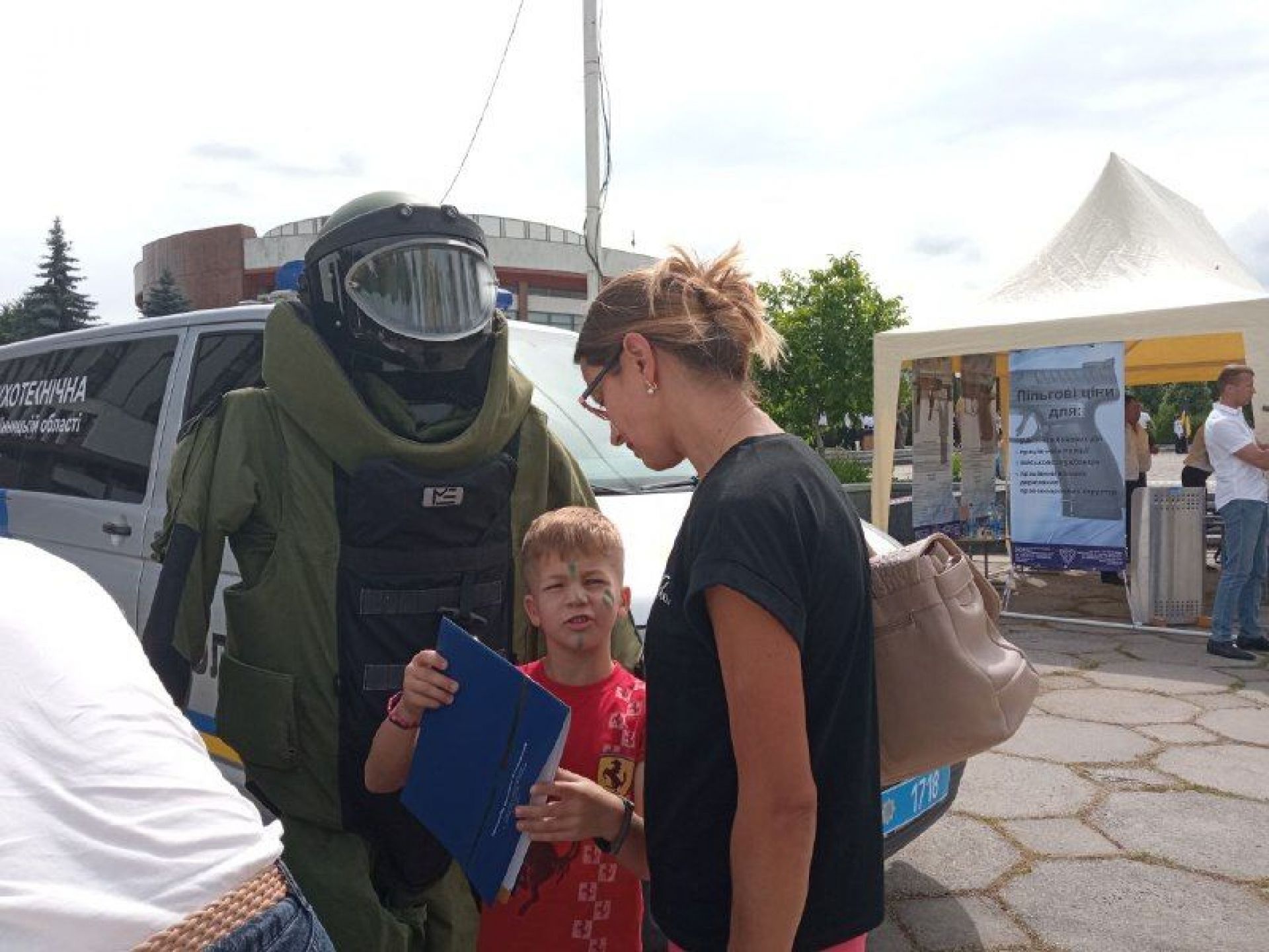 Привертає увагу вінничан і великий костюм — спецодяг вибухотехніка.