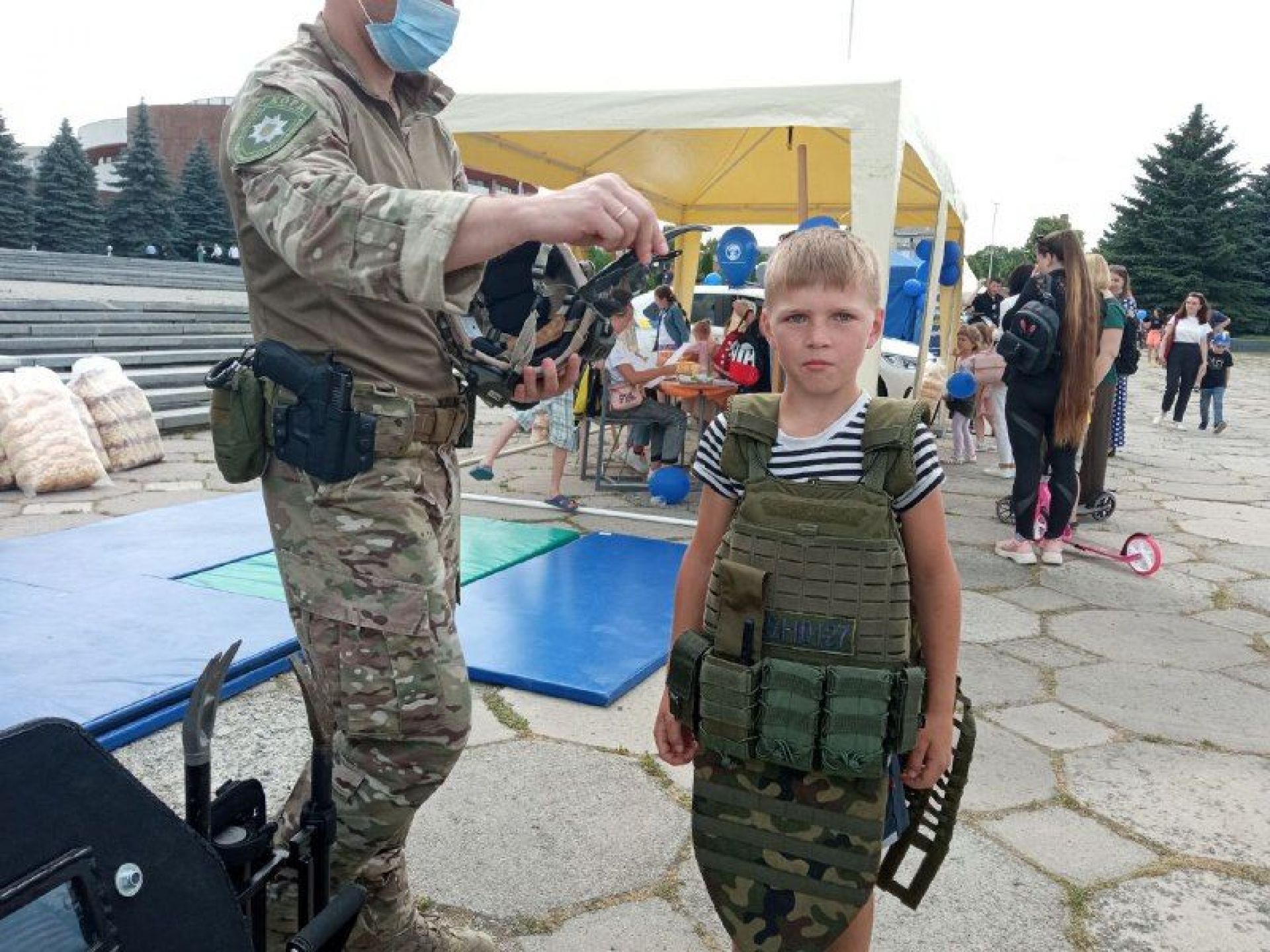 На їхній локації діти могли навчитись прицілюватись зі снайперських гвинтівок і приміряти важке екіпірування.