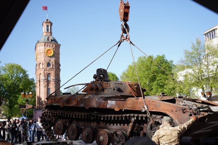 До Вінниці з-під Ірпеня та Бучі привезли кілька одиниць знищеної російської техніки. БМП та БМД розмістили на Європейській площі. Містяни сприйняли таку ініціативу неоднозначно. Вже наступного дня спалену техніку приберуть — всередині однієї з машин діти знайшли пістолет.