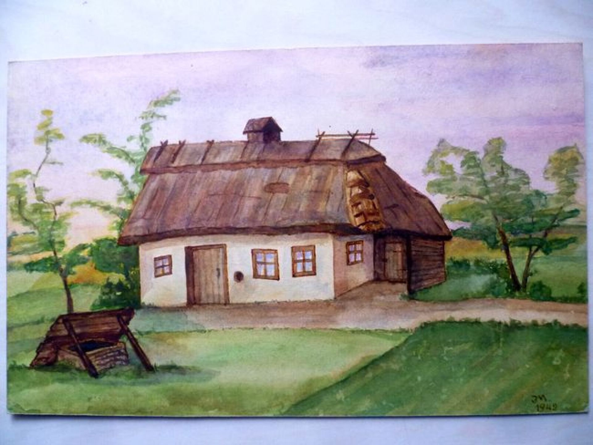 - У старому селі під Вінницею. Акварель, 20х31 см (більш пошкоджена).