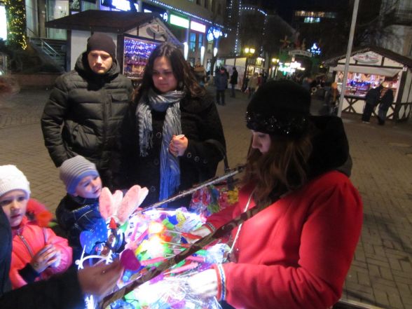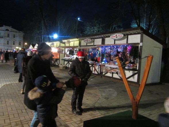 Святкова атмосфера в центрі міста швидко нагадає, що хоч снігу та морозів немає, за п’ять днів прийде Новий рік. Погуляти на ярмарок приходять цілими сім’ями, для багатьох вінничан приходити на новорічний ярмарок стало традицією.