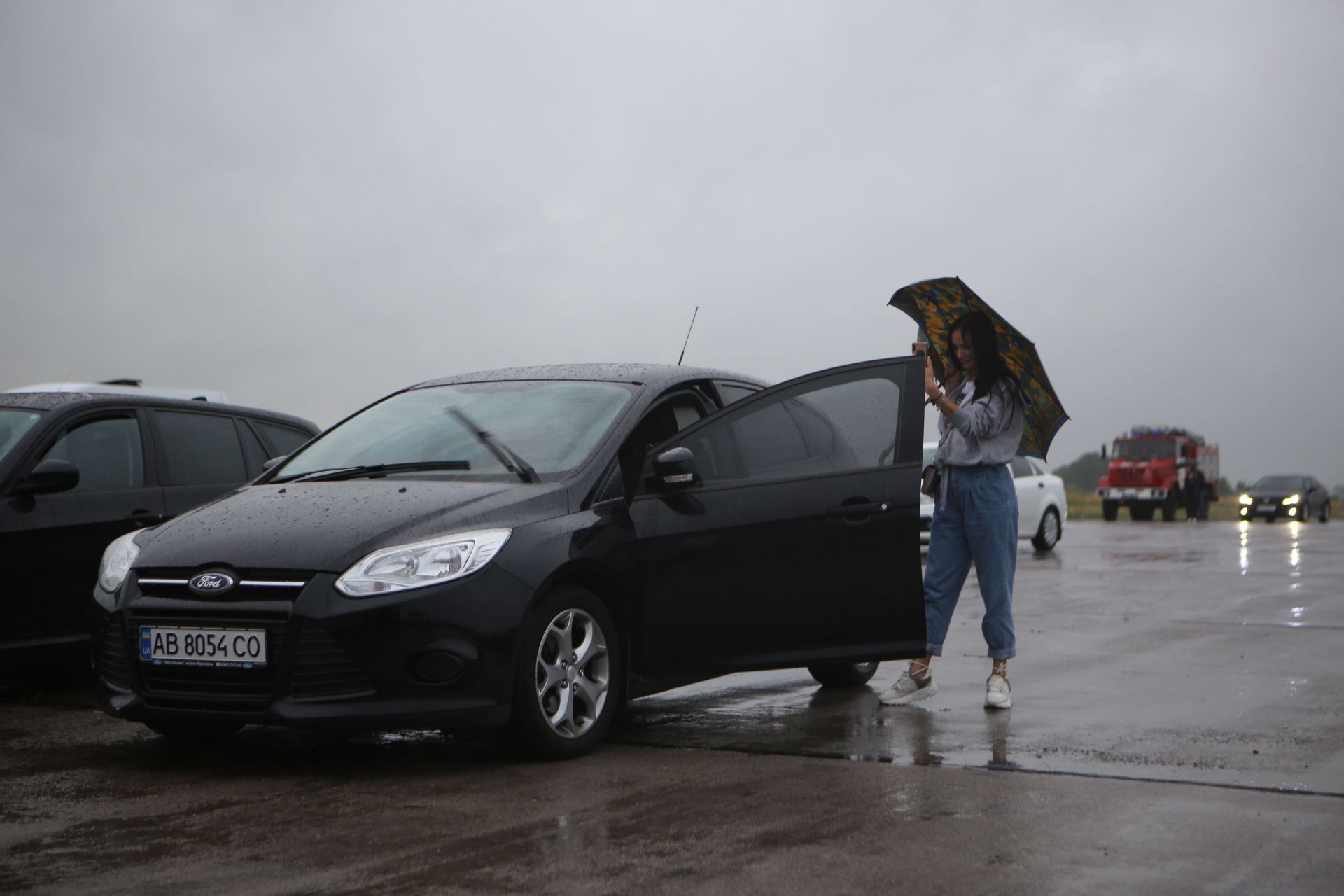 До в'їзду на території вінницького аеропорту, де відбувався захід, вистроювались черги з машин. Перед тим, як заїхати на територію потрібно було постояти хвилин десять у заторі. Вже при самому в'їзді перевіряли квитки, міряли температуру водію і дарували пачку снеків.