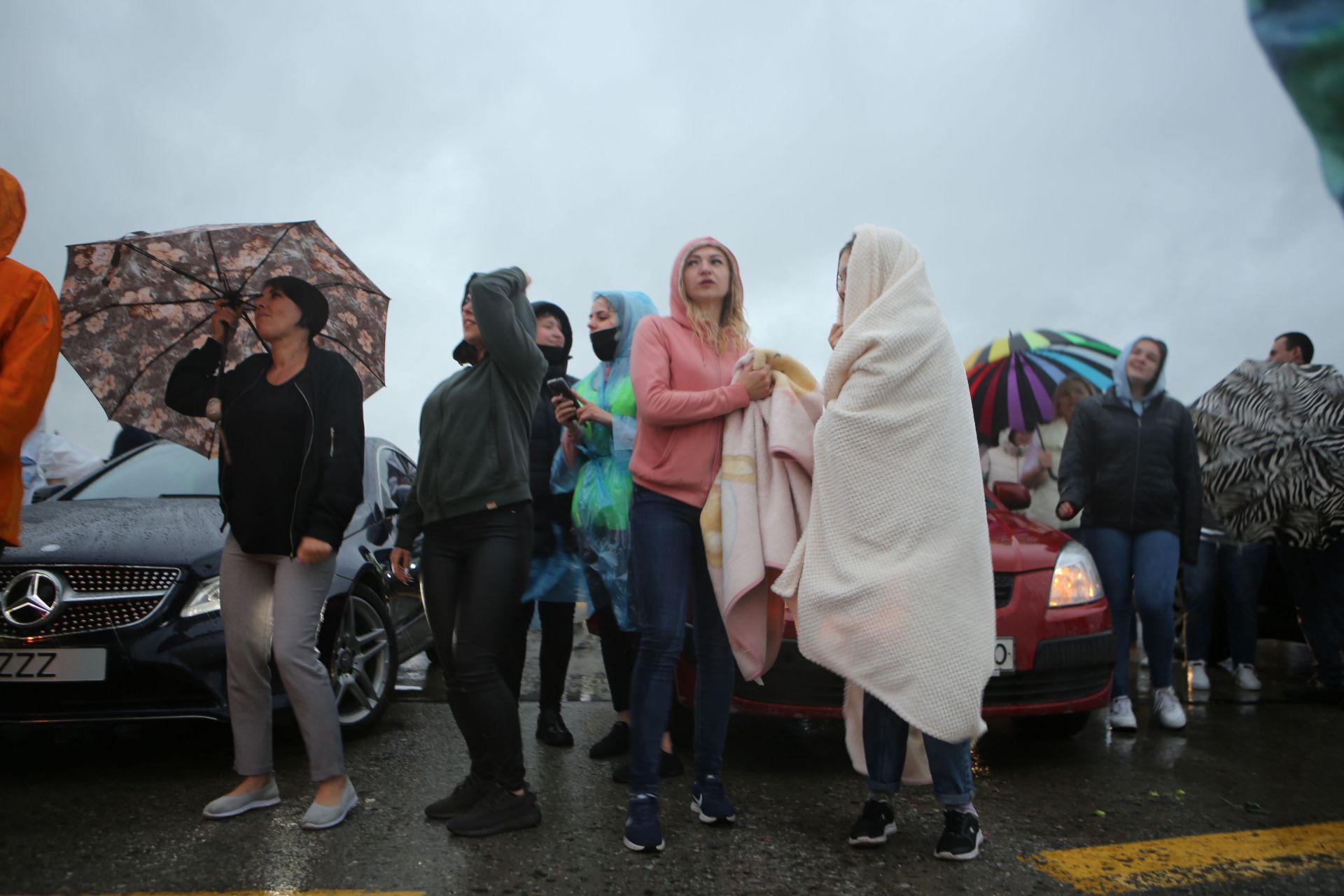 - Попри дощ, фанати гурту відривались біля своїх автівок, а замість оплесків — сигналили машинами.