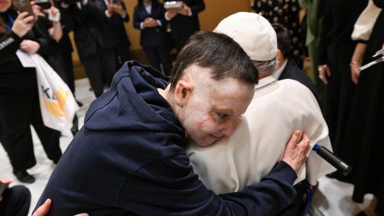 Уперше це сталося під час загальної аудієнції 6 грудня 2023 року, коли він, у рукавичках і синій масці, передав Святішому Отцеві листа, а потім підвівся і обійняв його. Друга зустріч відбулася 25 травня 2024 року в контексті першого Всесвітнього дня дітей, який відзначався у Церкві з ініціативи Папи Франциска.