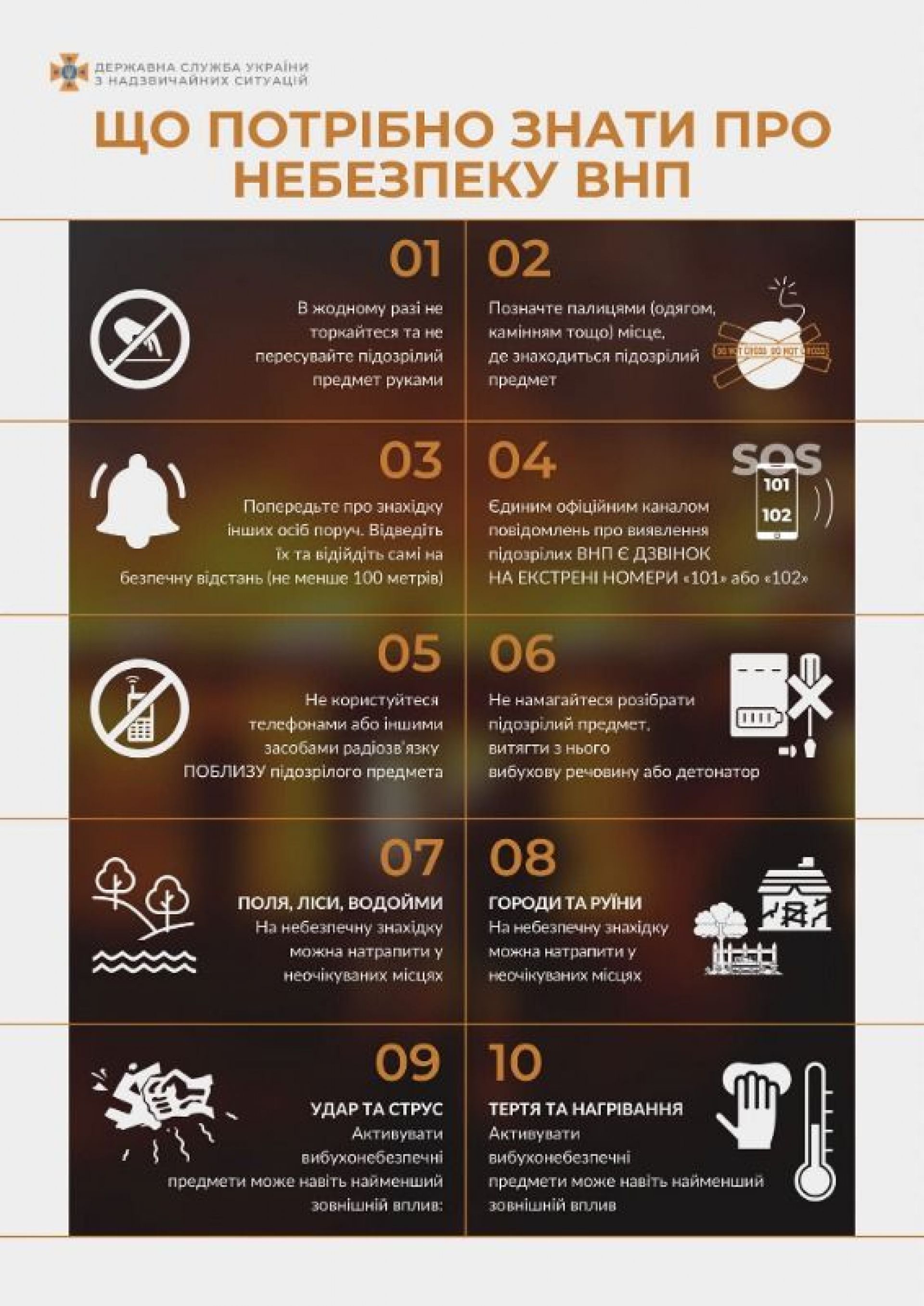 «Рятувальники Вінниччини вкотре звертаються до громадян, при виявленні підозрілих предметів в жодному разі не проводити з ними ніяких маніпуляцій, а негайно телефонувати до Служби порятунку за номером 101», — зазначають у головному управління ДСНС України у Вінницькій області.