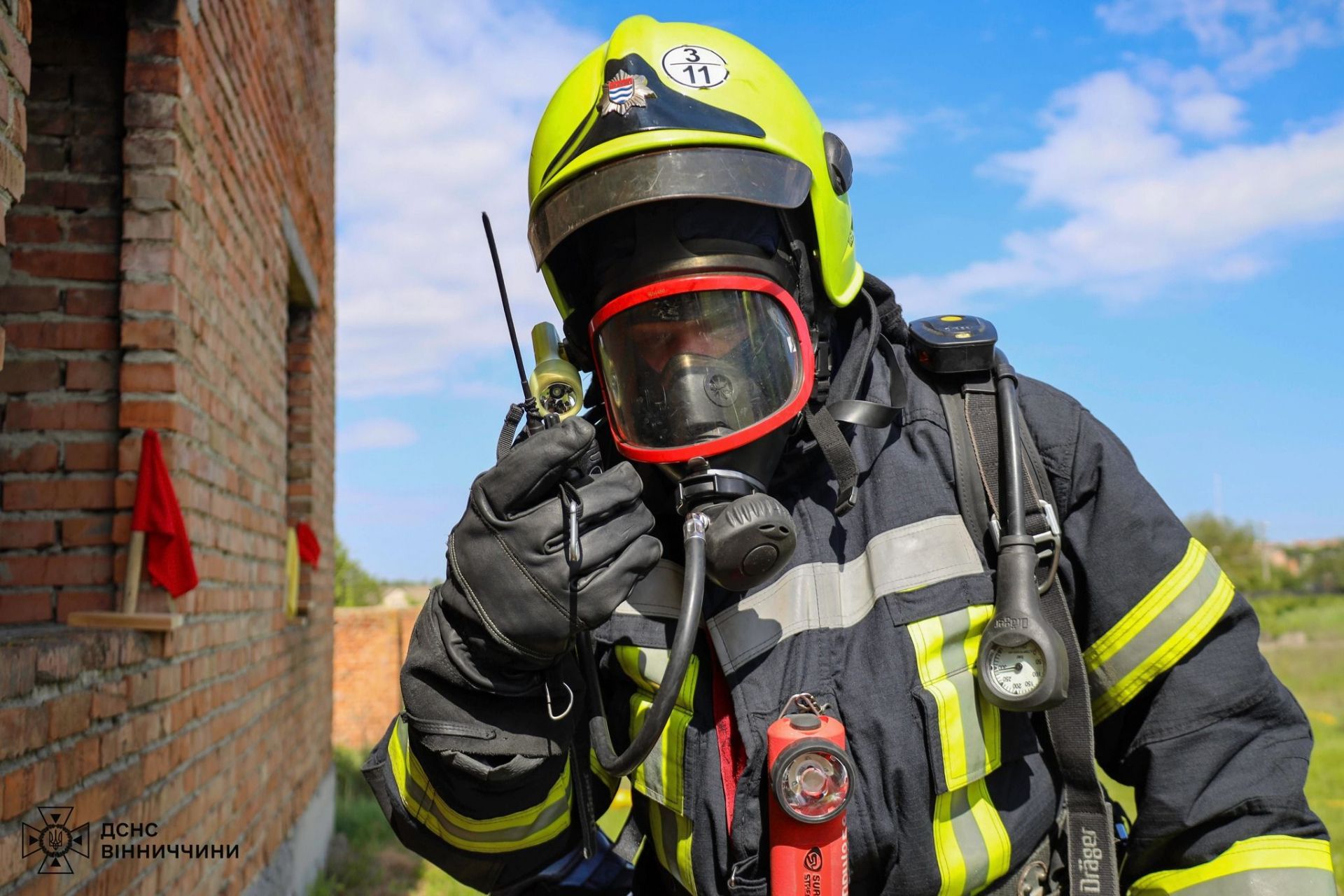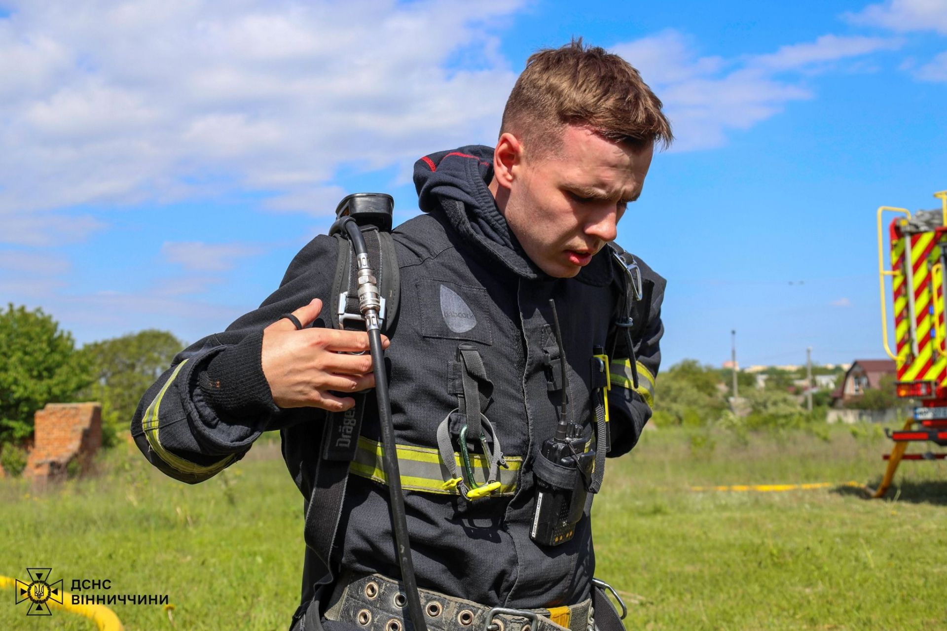 Сьогодні, 15 травня, у Вінниці рятувальники провели тренування з ліквідації пожежі в житловому будинку. Для цього на одному з міських полігонів розгорнули навчальну локацію.