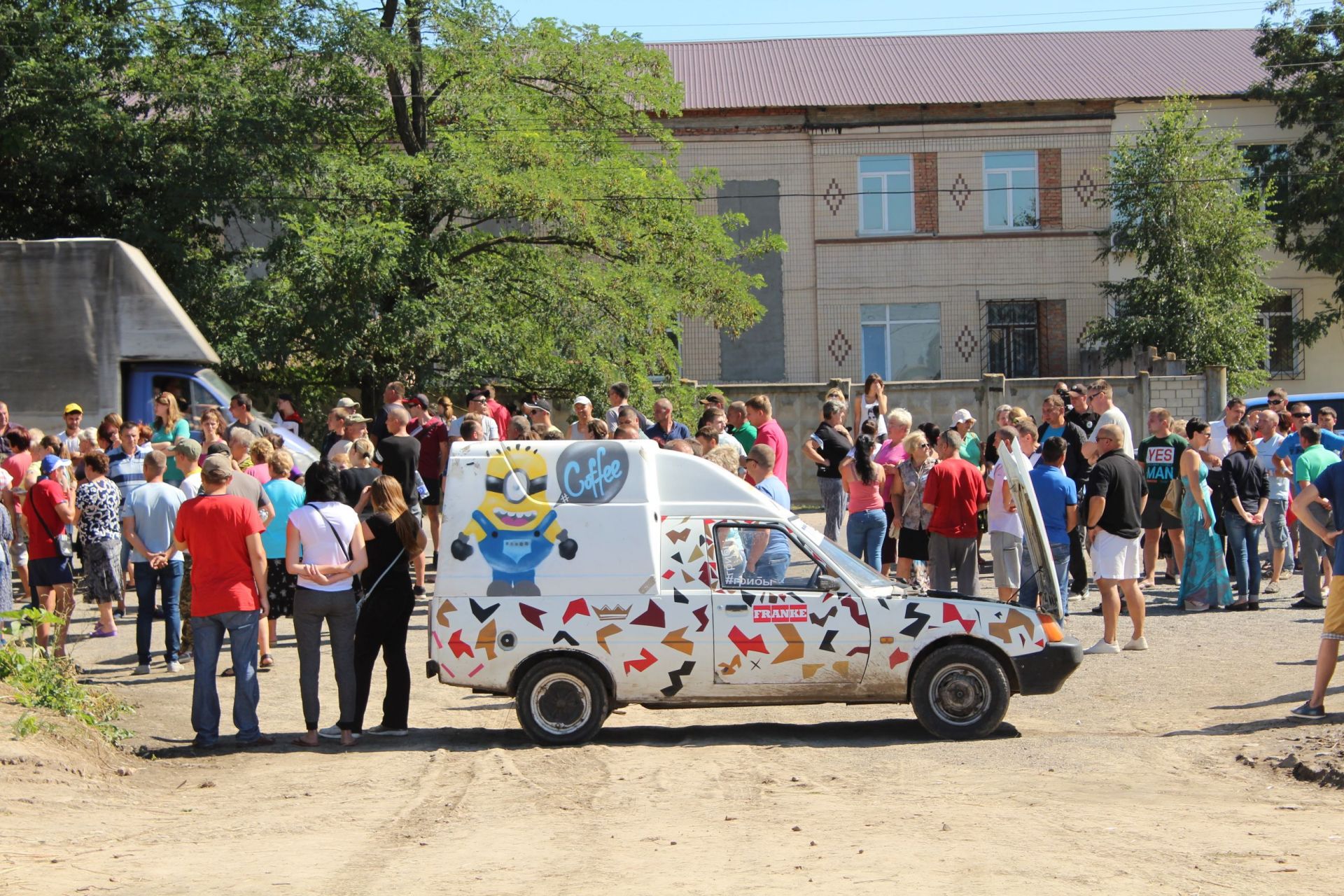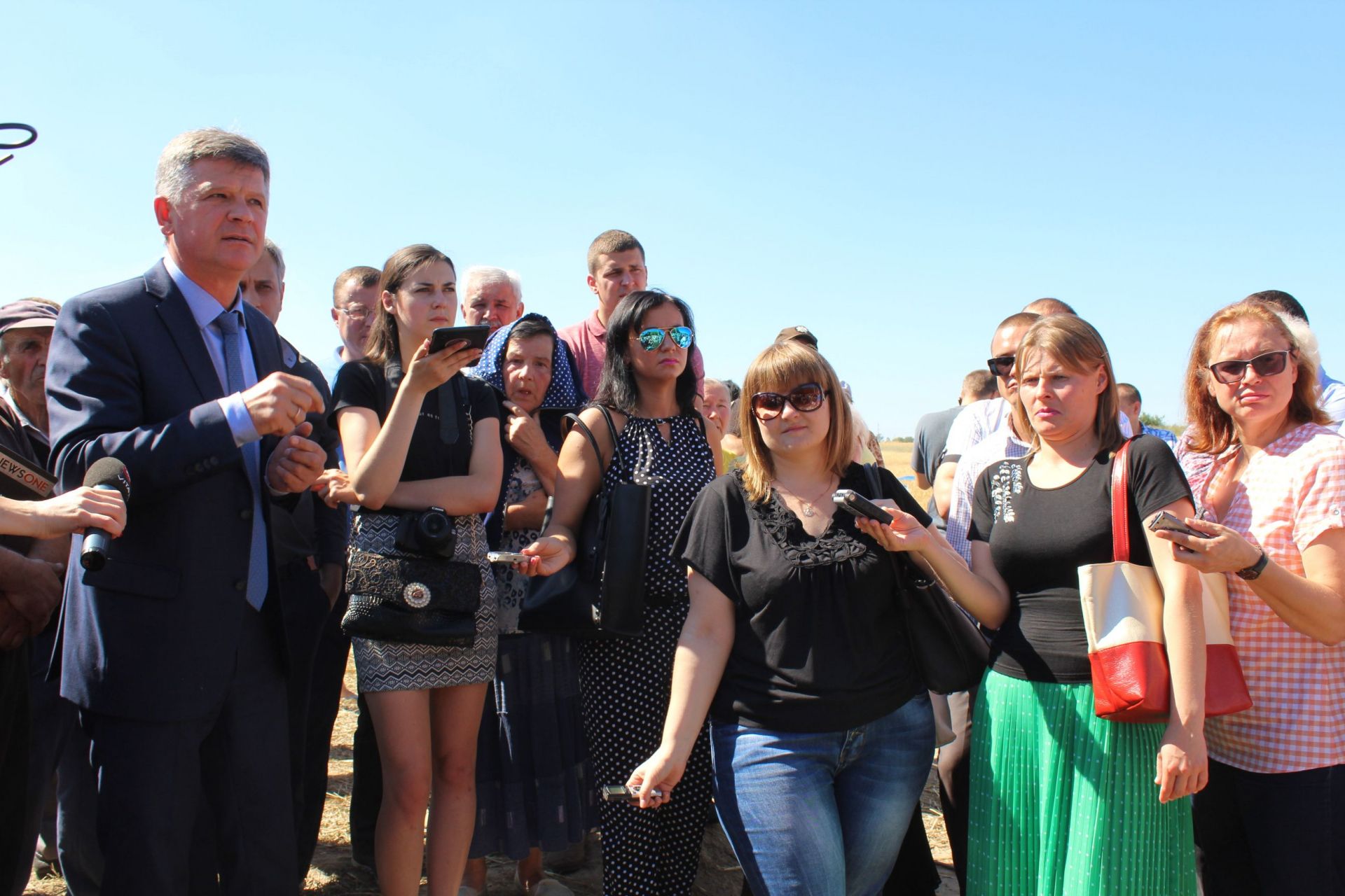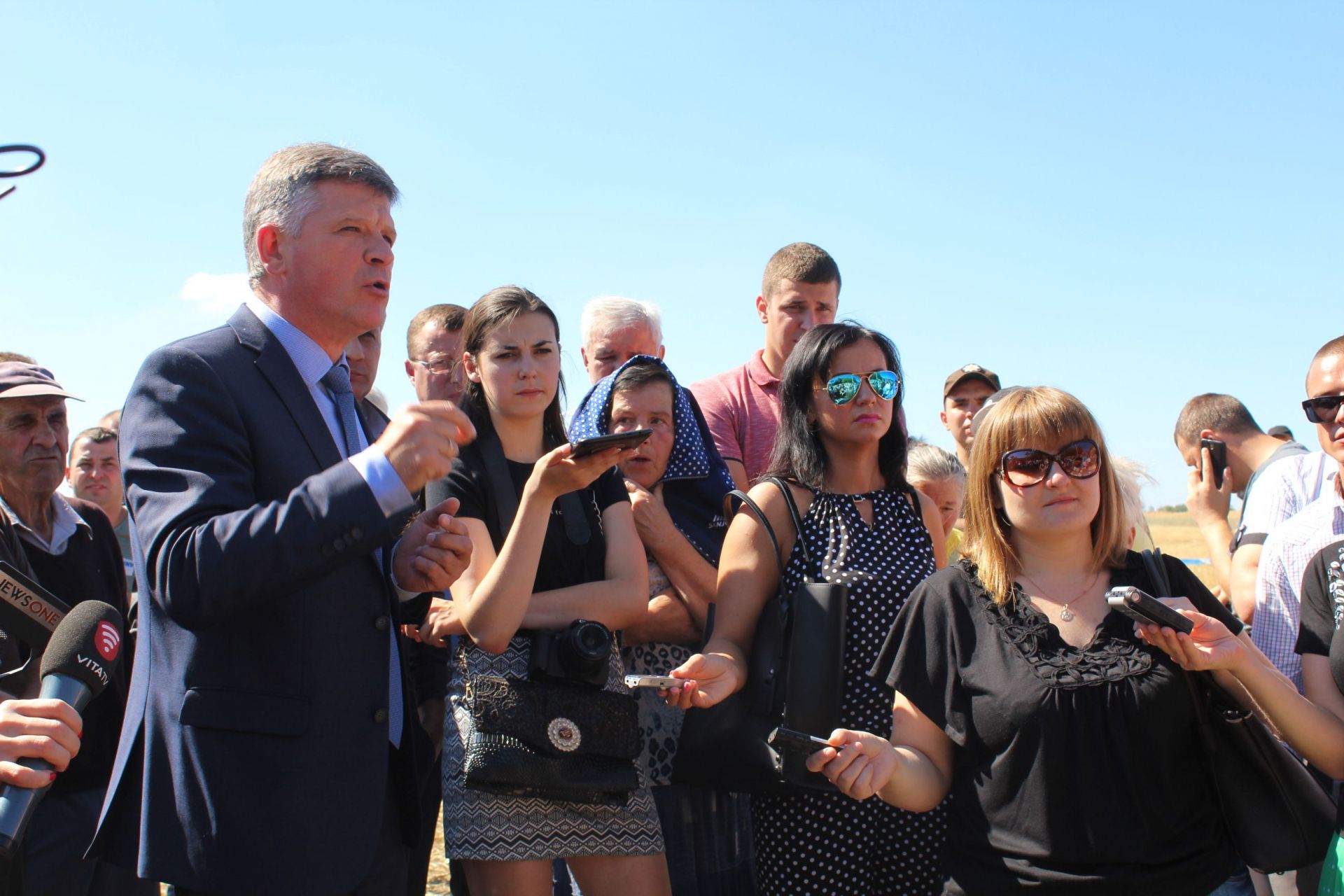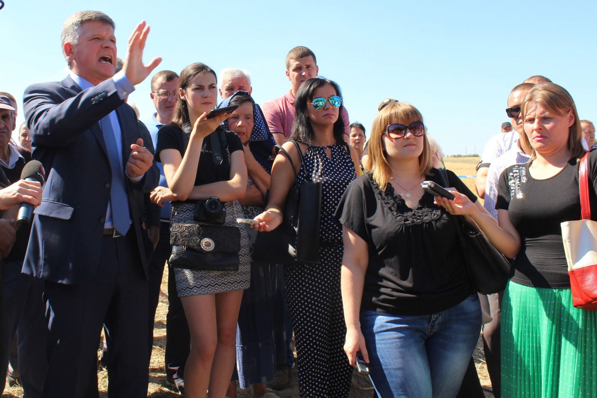 Посеред поля стоїть трактор, який оточили спецпідрозділи поліції та спецпідрозділ «Гепард» . Люди розділилися умовно на три частини: одні попрямували до техніки, яка прибула зі сторони очисних споруд. Інші кілька людей пішли до трактора та грузовика, які стояли далі, ближче до кар'єру. Решта зосталася біля трактора.
