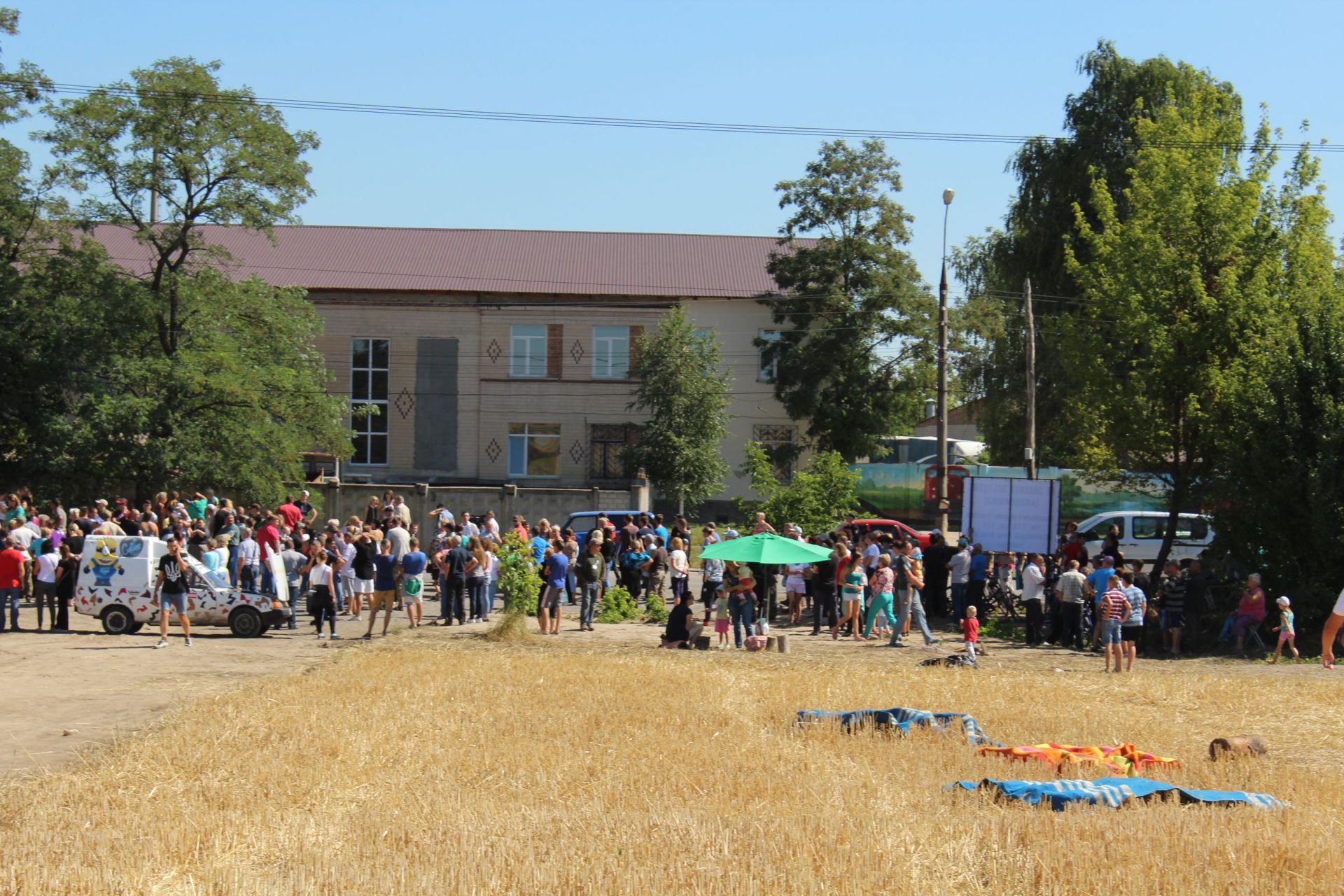 Вчора, 30 липня, кореспондент RIA побувала на місці мирної акції сабарівчан. Люди з 27 липня днюють і ночують у полі, протестуючи проти будівництва нового міського кладовища розміром 36 гектарів. Сьогодні вони зібралися знов, бо чекають на провокації зі сторони влади. Зараз протестувальники розділилися на 2 групи: ті, хто стоять при дорозі, де, власне, розташований сам табір, і ті, хто пішов блокувати роботу техніки, яка стоїть посеред поля. За сабарівчанами спостерігають молодики у форменній одежі.