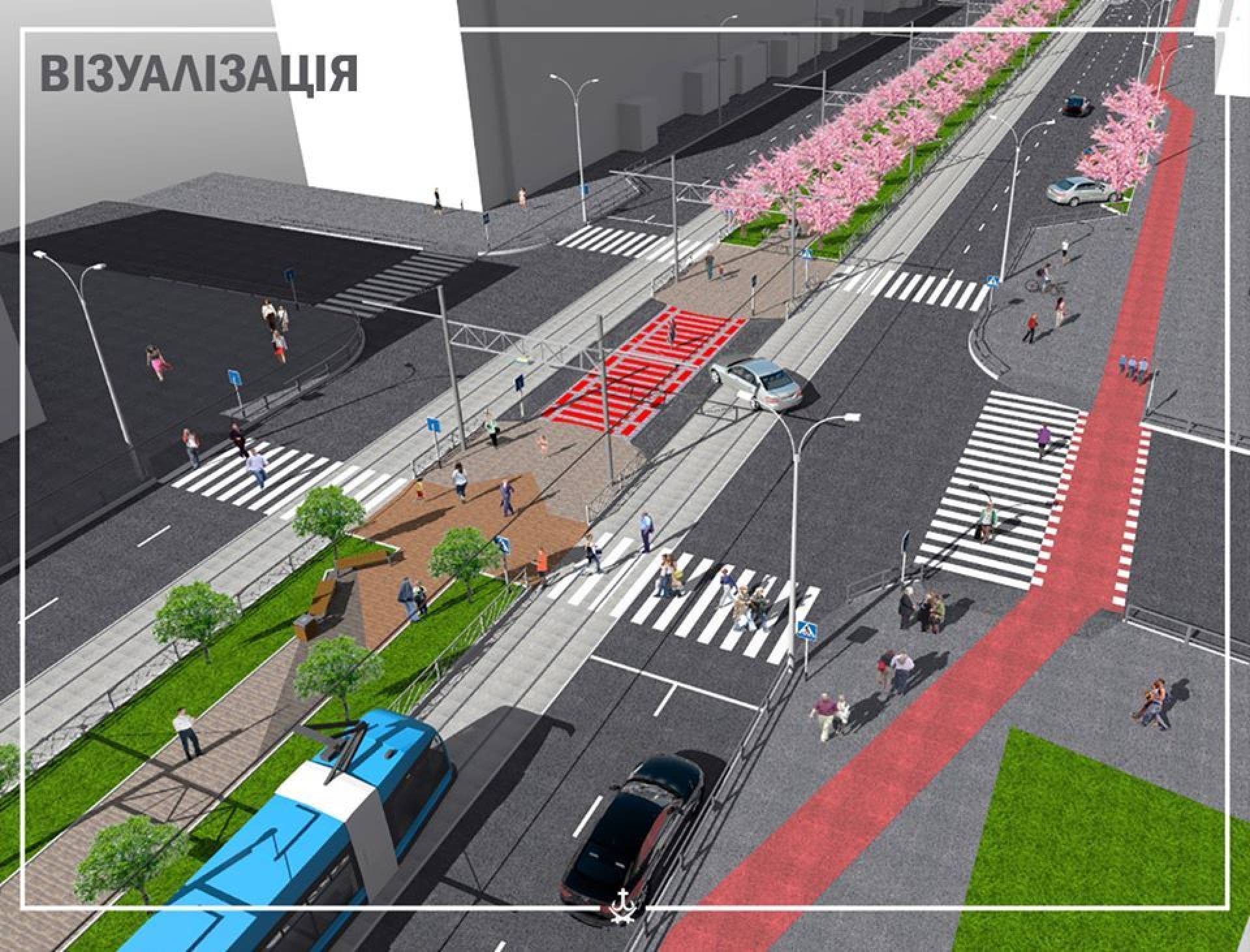 — У місцях, де є трамвайна зупинка, створимо зони посадки: такі собі острівки безпеки. Тобто, в цих місцях дорога буде звужуватися до однієї смуги, а далі розширятися до двох смуг.