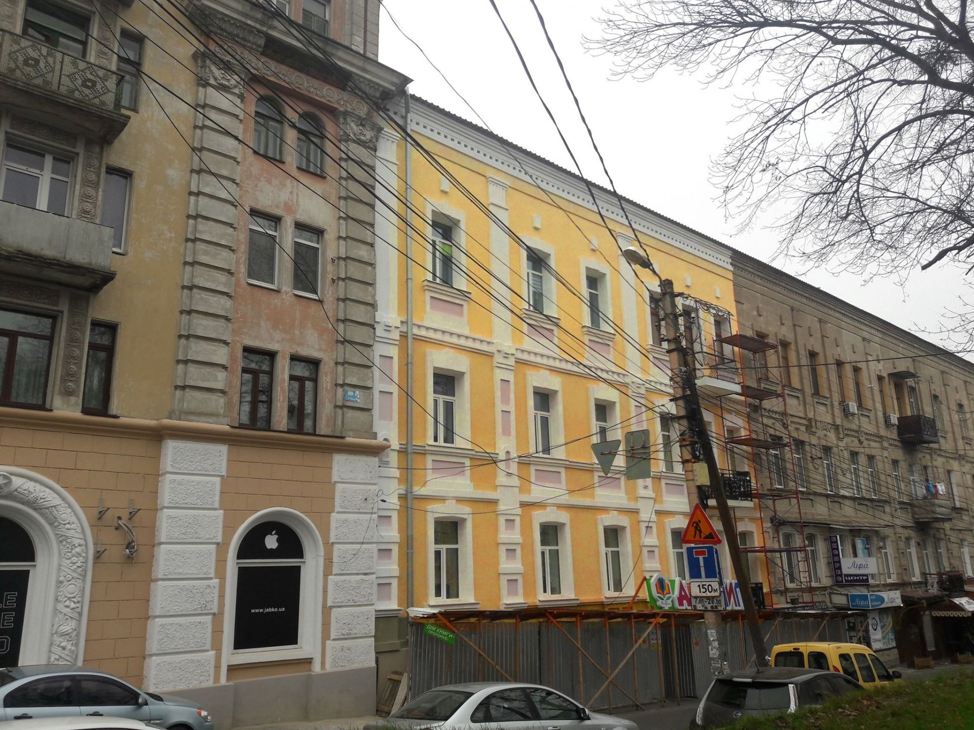 Але якщо пройти донизу вулиці Соловйова, то на думку автора, новий колір фасаду дому гармонізує з кольором, у який пофарбована гімназія №17