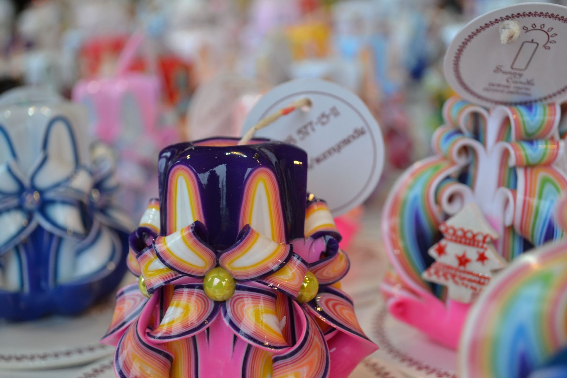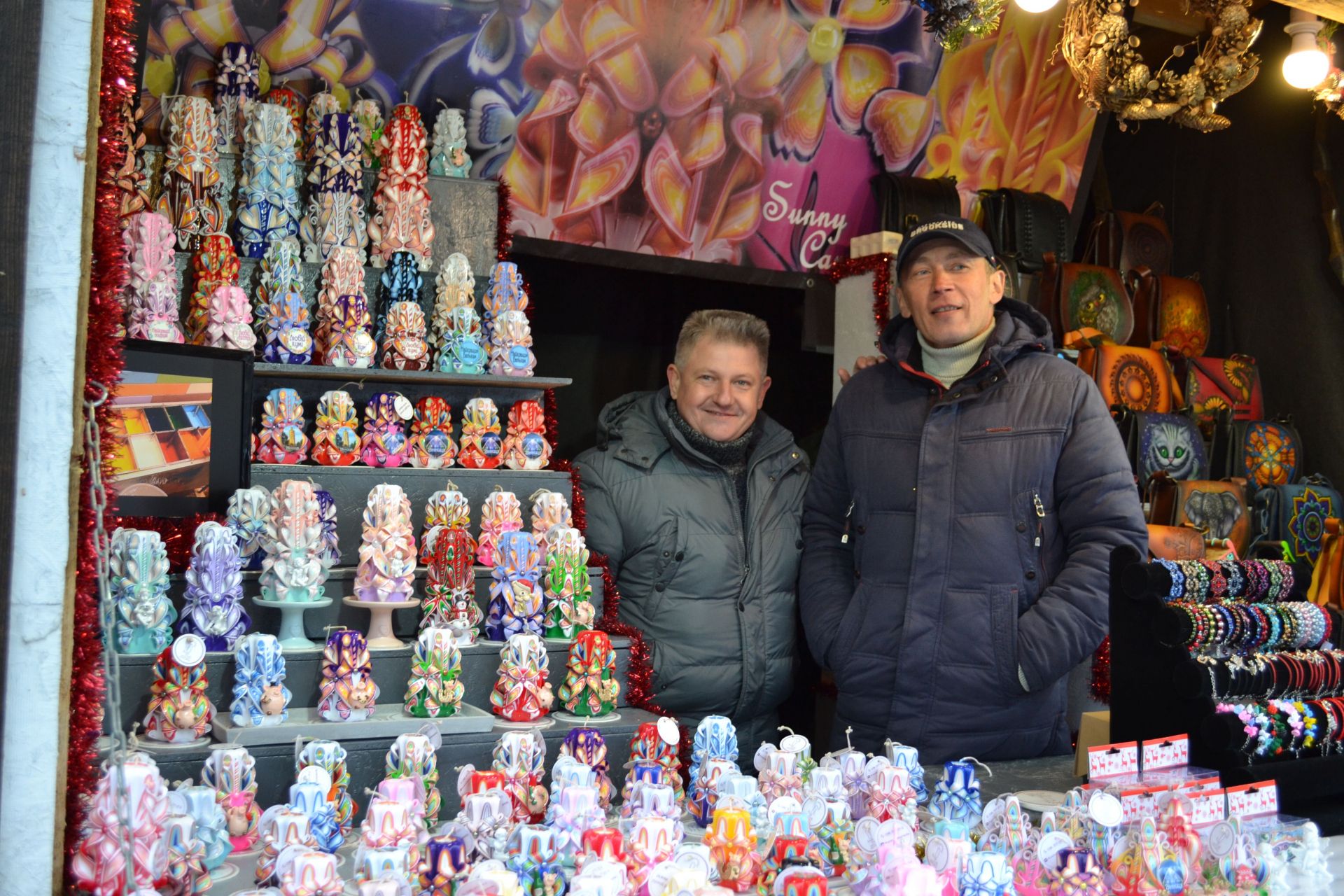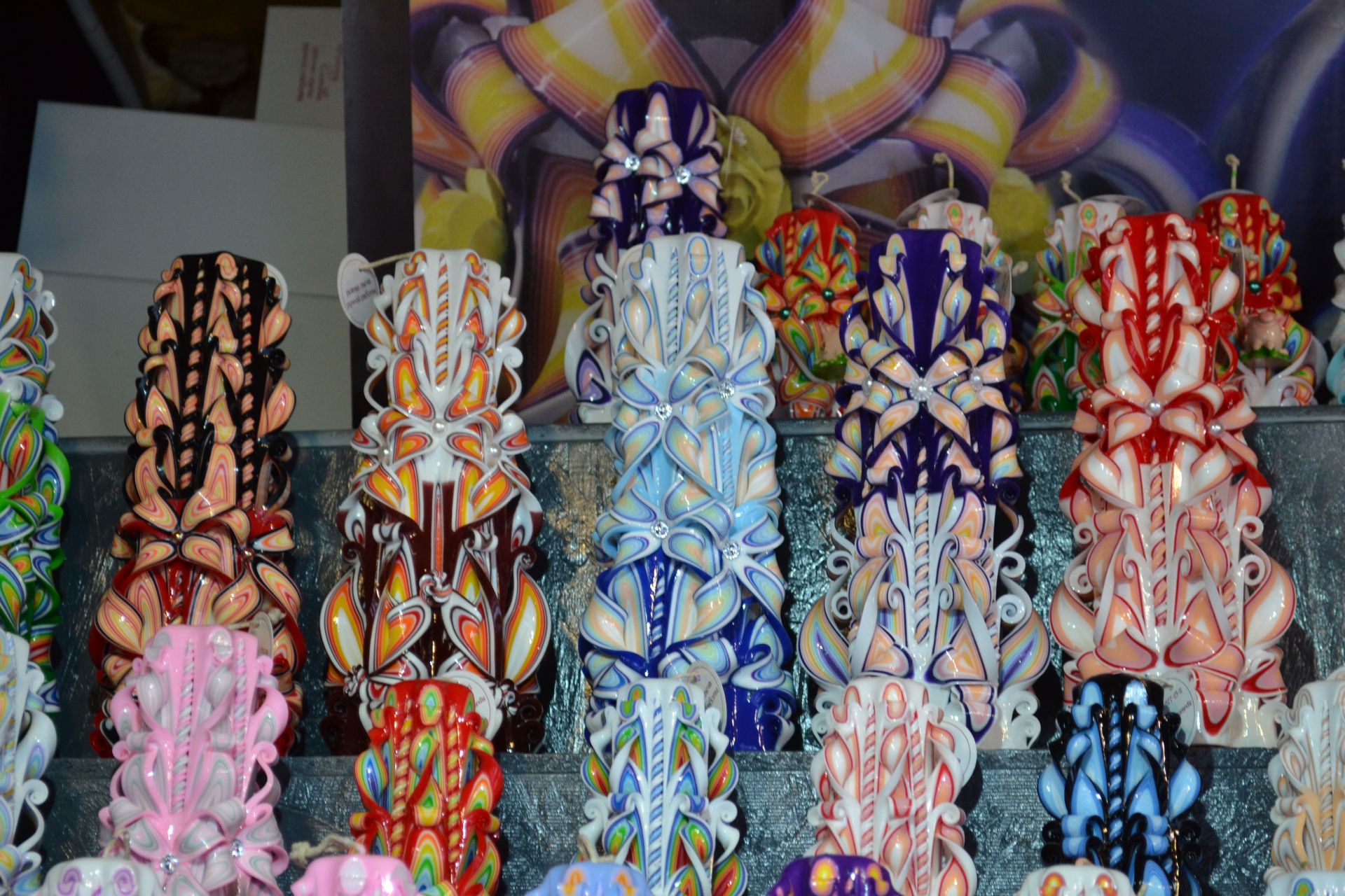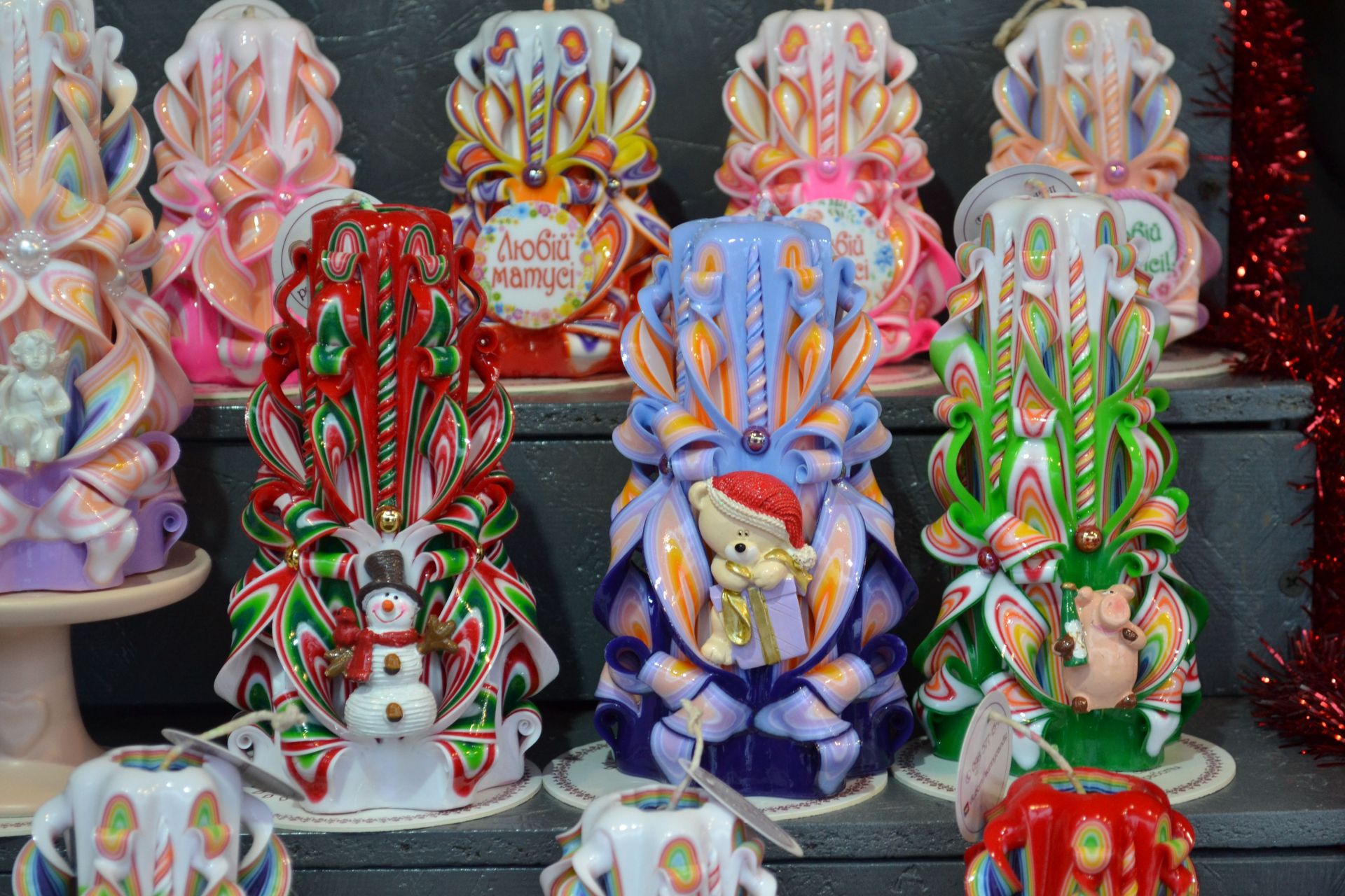 Найоригінальніша продукція ярмарку – свічки ручної роботи майстрині з Тиврівського району. Цього року найбільше купують символ року – свічки з кабанчиком. Крім того досить популярні свічки з янголами. Продавець говорить, що їх купують спеціально до дня Святого Миколая. Цінова політика на такі вироби становить від 85-ти до 350-ти гривень за свічку. Все залежить від розміру та прикрас.