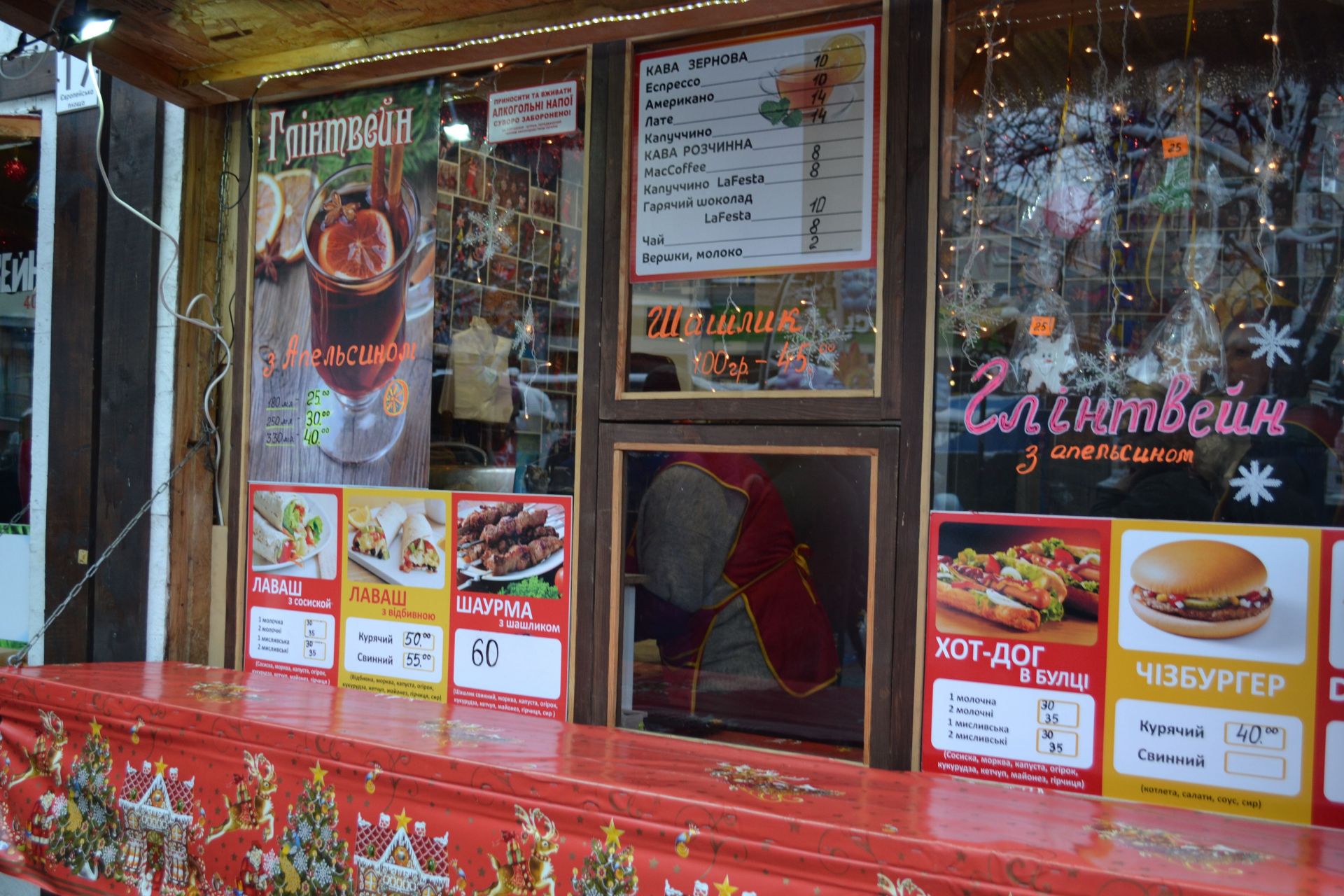 Із продукції to go лідерські позиції займає глінтвейн. Ціни різні від 30-ти до 50-ти гривень за стаканчик. Є ті, хто вже протягом шести років розміщує свій стенд на ярмарку і люди охоче приходять за смаколиками саме до них. Шашлик можна придбати за 50 гривень і так само фрі-сет (картопля фрі, цибулеві кільця).