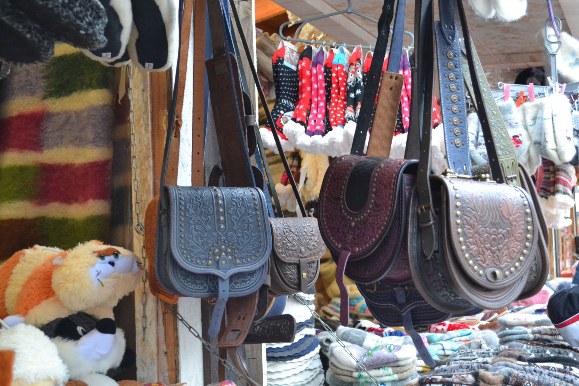 Поруч розмістилася ще один вид ручної роботи – шкіряні сумки. ЇХ виготовляють пан Іван разом із дружиною в Кам'янці-Подільському. Ціна на такий подарунок в середньому – 2,5 тисячі гривень.