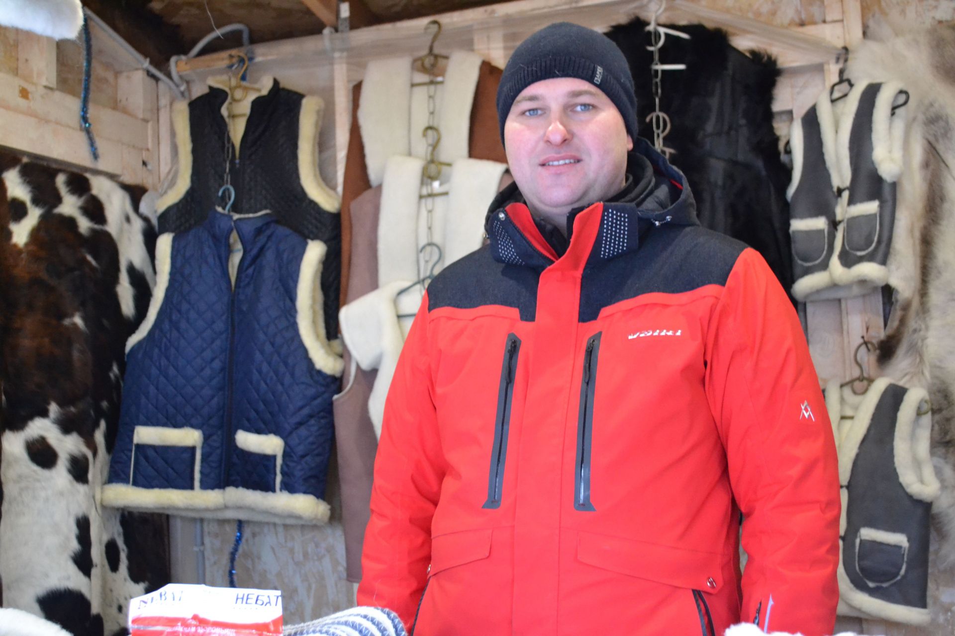 Юрій приїхав з Івано-Франківщини. Щороку чоловка запрошують до Вінниці, тому його товар на вінницьких прилавках не вперше. Здебільшого тепла продукція Юрія вироблена у Косино. Крім одягу можна придбати карпатський чай та сушені білі гриби власного виробництва.