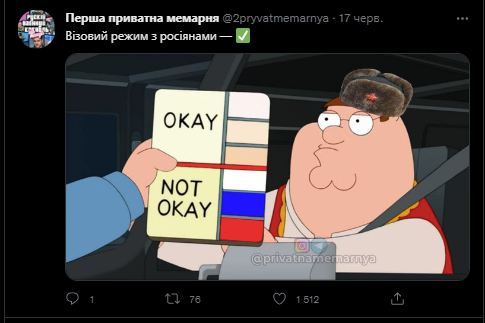 Створення і розповсюдження мемів, які стали новітнім інструментом воєнної пропаганди, забезпечує і психологічну підтримку громадян. Вони дали мільйонам українців моменти колективної радості у цей смертоносний і жахливий час.