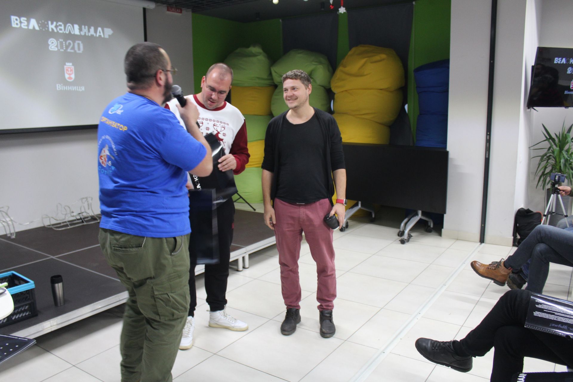 Під кінець презентації велокаледаря Олександр Царевський дарував примірники волонтерам зі спільноти велосипедистів, які часто підтримують проведення події у Вінниці. Також подякував календарем і за інформаційну підтримку в медіа. Серед інфопартнерів є й «20хвилин»: