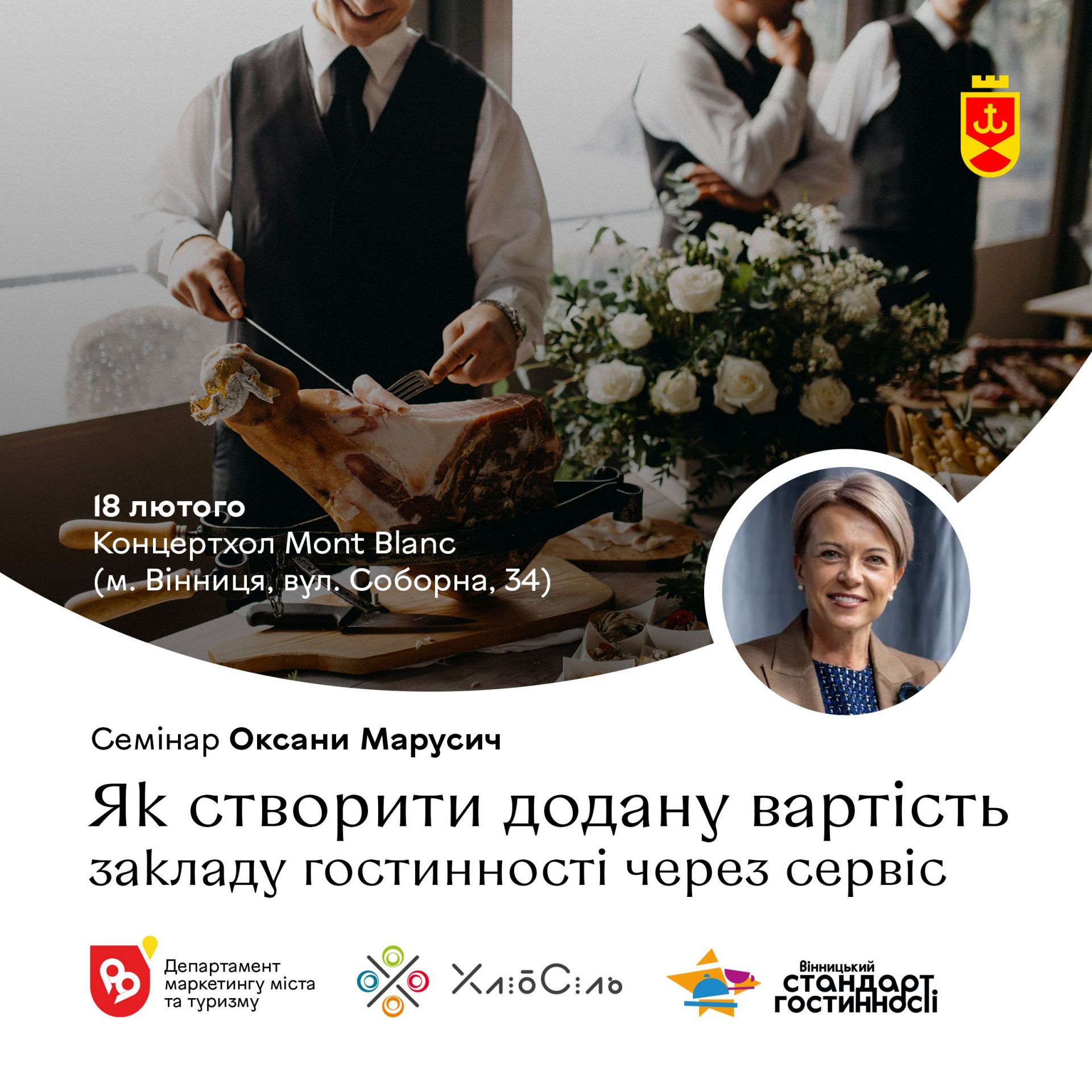 У Вінниці 18 лютого відбудеться семінар «Як створити додану вартість закладу гостинності через сервіс». Його проведе експертка з сервісу та якості Оксана Марусич.