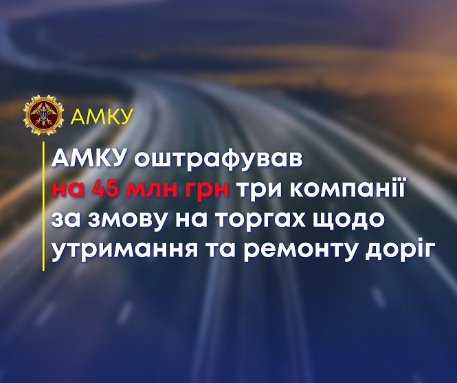 - Антимонопольний комітет України оштрафував на 45 млн грн три компанії за змову на торгах щодо утримання та ремонту доріг. Серед компаній — вінницькі.