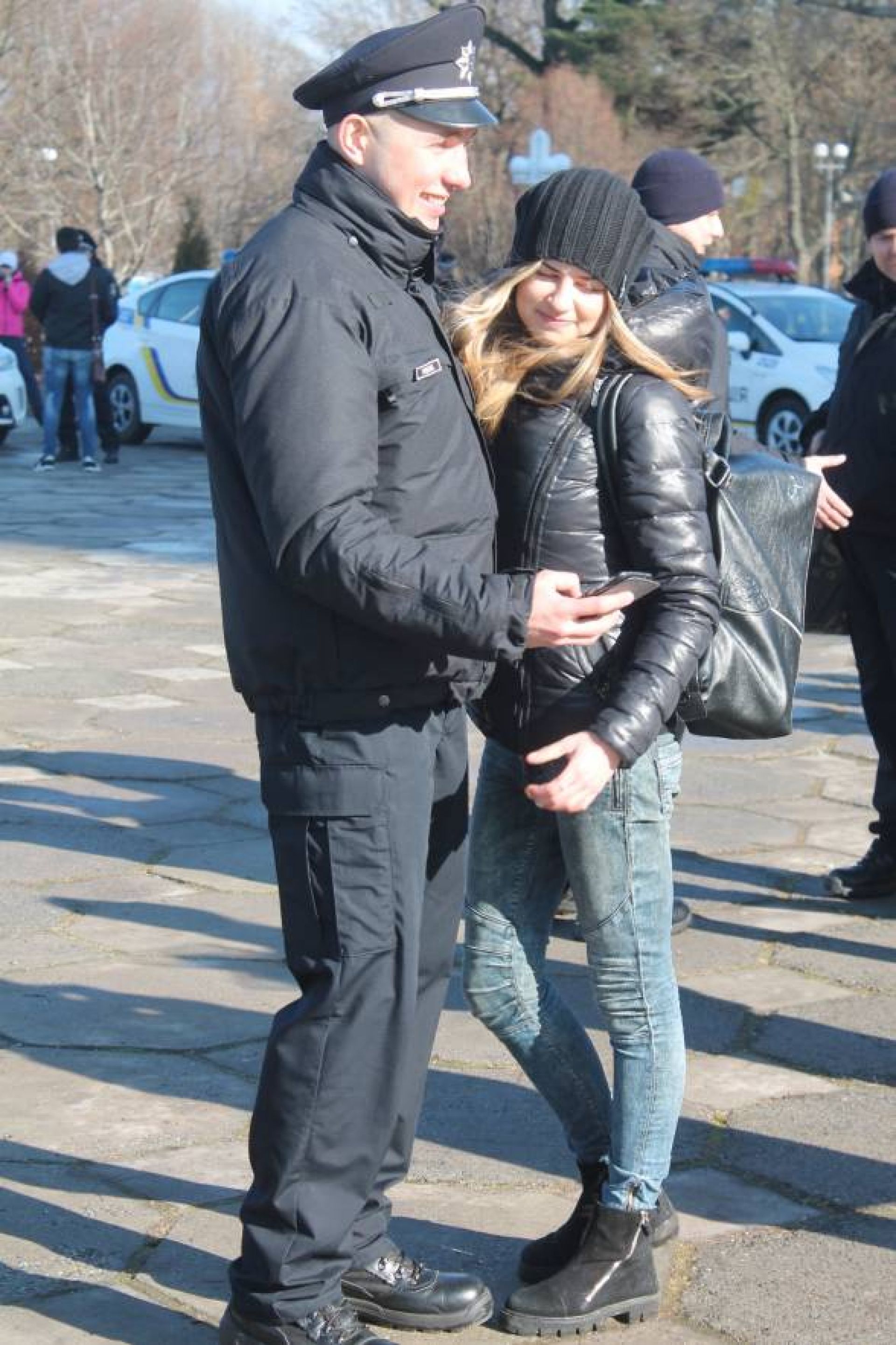 Цієї ночі вперше патрулюватимуть вінницькі вулиці нові патрульні поліцейські, які сьогодні вдень, 22 лютого, склали присягу. Чекали початку урочистостей, а потім присягали на вірність народу України вони під дощем і мокрим снігом. Розпогодилося тільки після того, як офіційна частина минула. І вже під сонцем фотографувалися нові вінницькі «копи» з друзями і рідними. Дівчатам у формі дарували квіти. Чоловіки-поліцейські знімали кашкети, щоб їхні поруги в них позували біля новеньких патрульних машини.