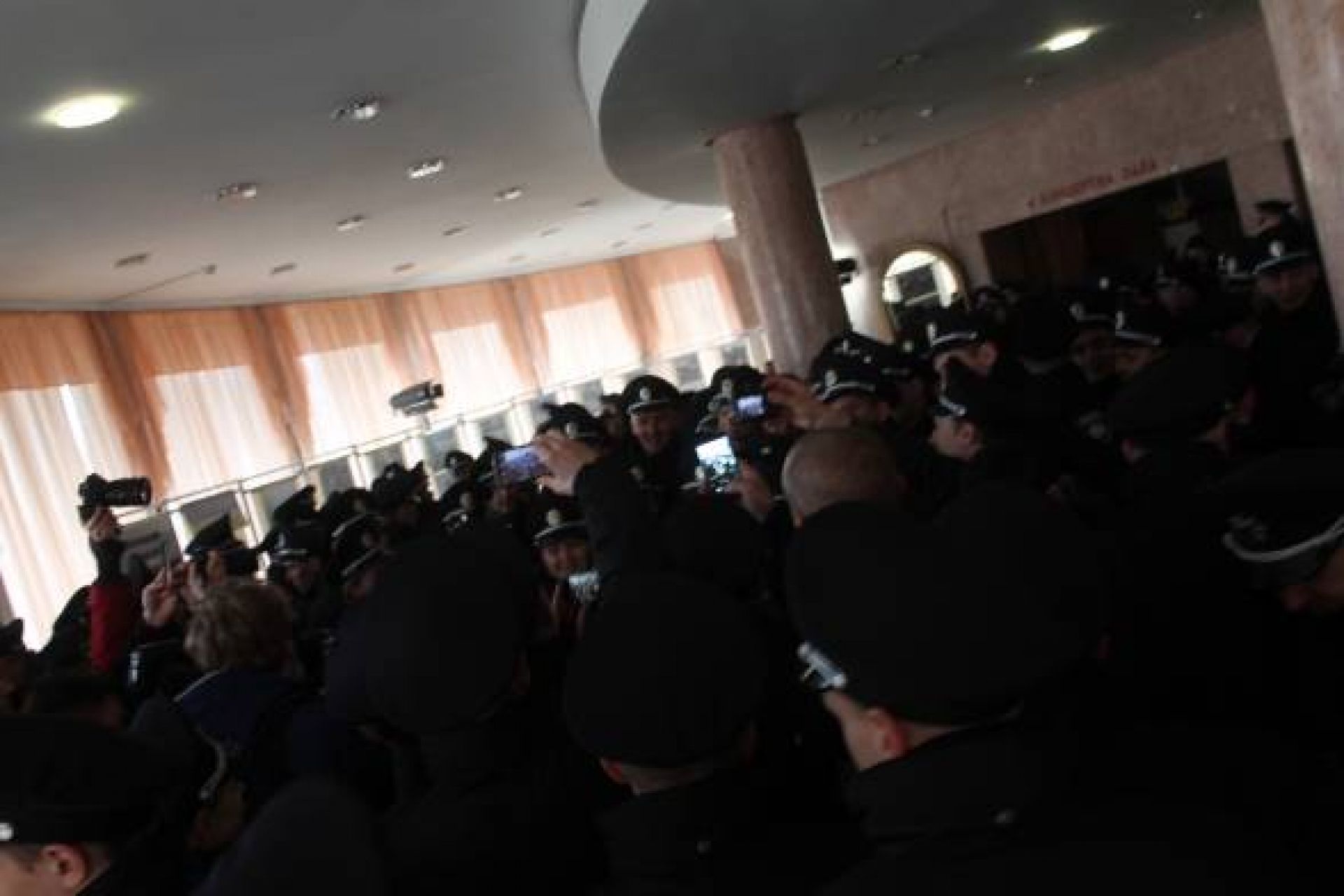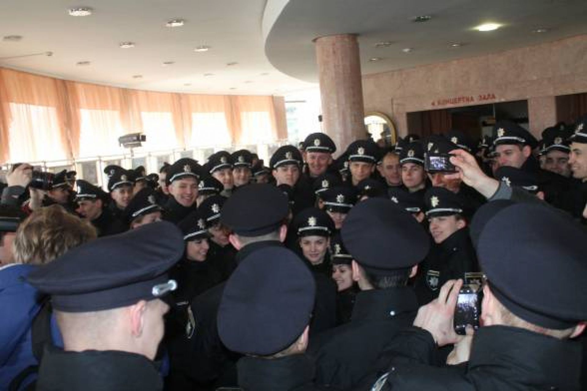 Поки до Вінниці летіти перші особи держави, поліцейські мерзли. Їх відпускали на трохи погрітися в Плеяду. Там «копи» їли шоколадки, пили каву і стояли в черзі до дзеркала. А ще — мали розмову з керівницею національної поліції Хатією Деконаїдзе, яка завершилася груповим селфі. Потім була присяга.