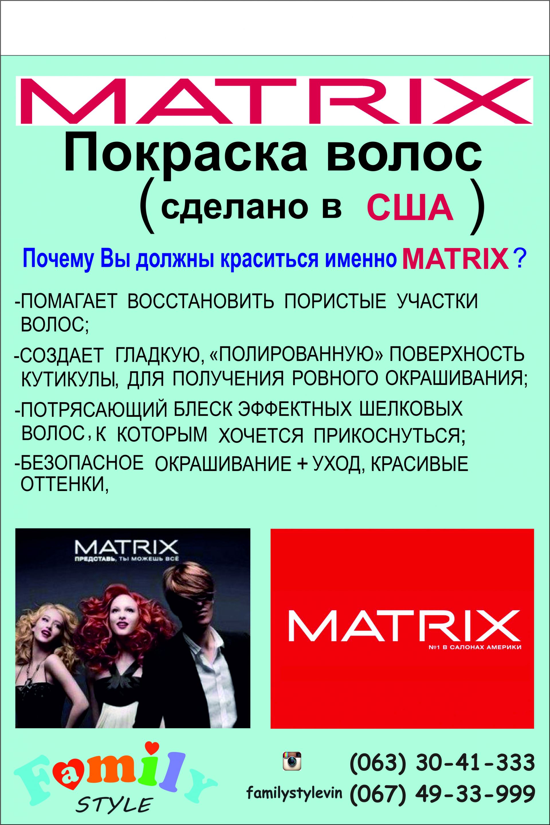 Майстри працюють з якісними продуктами з США,Німеччини та Франції – МАТRIX, Nouvelle, Erayba, Indola