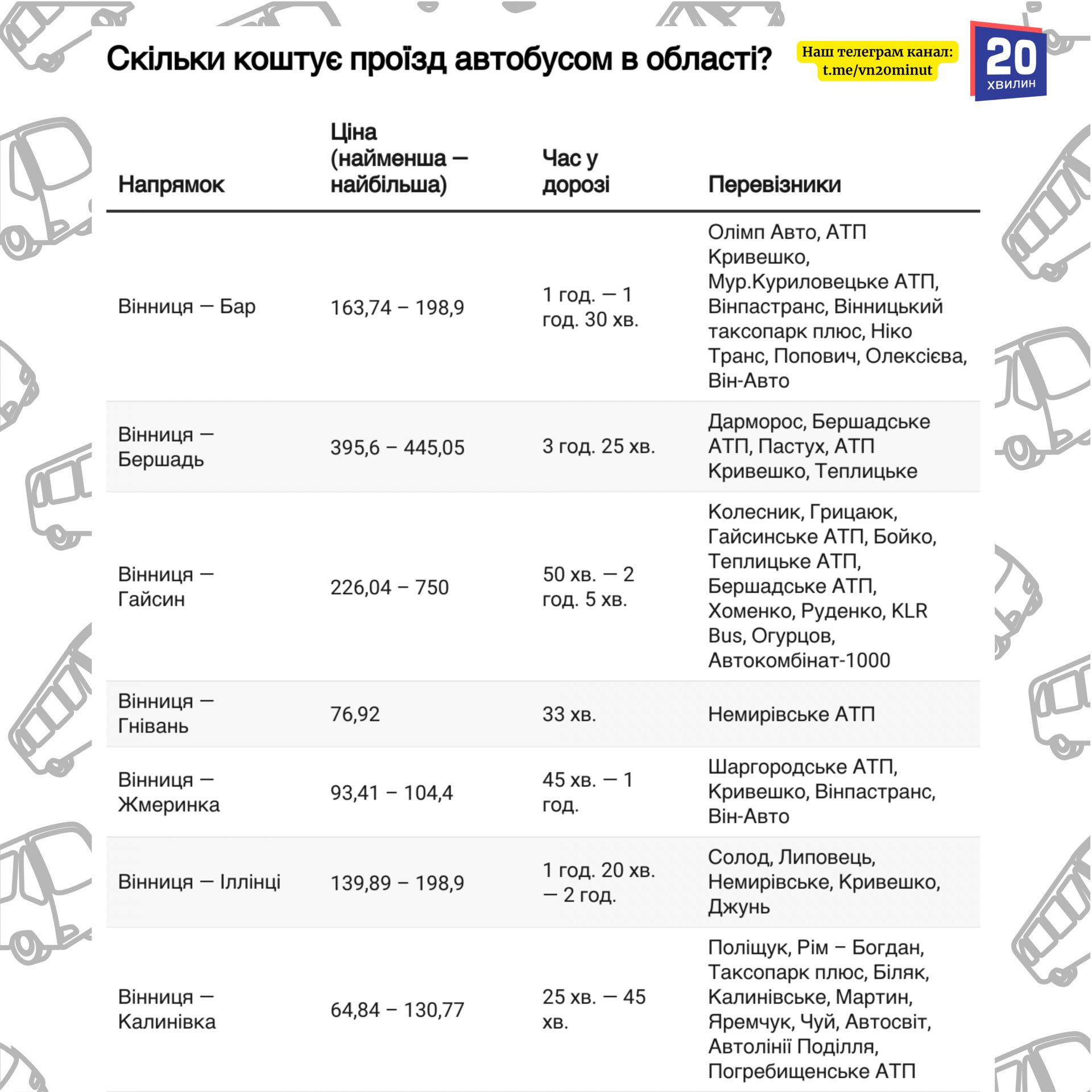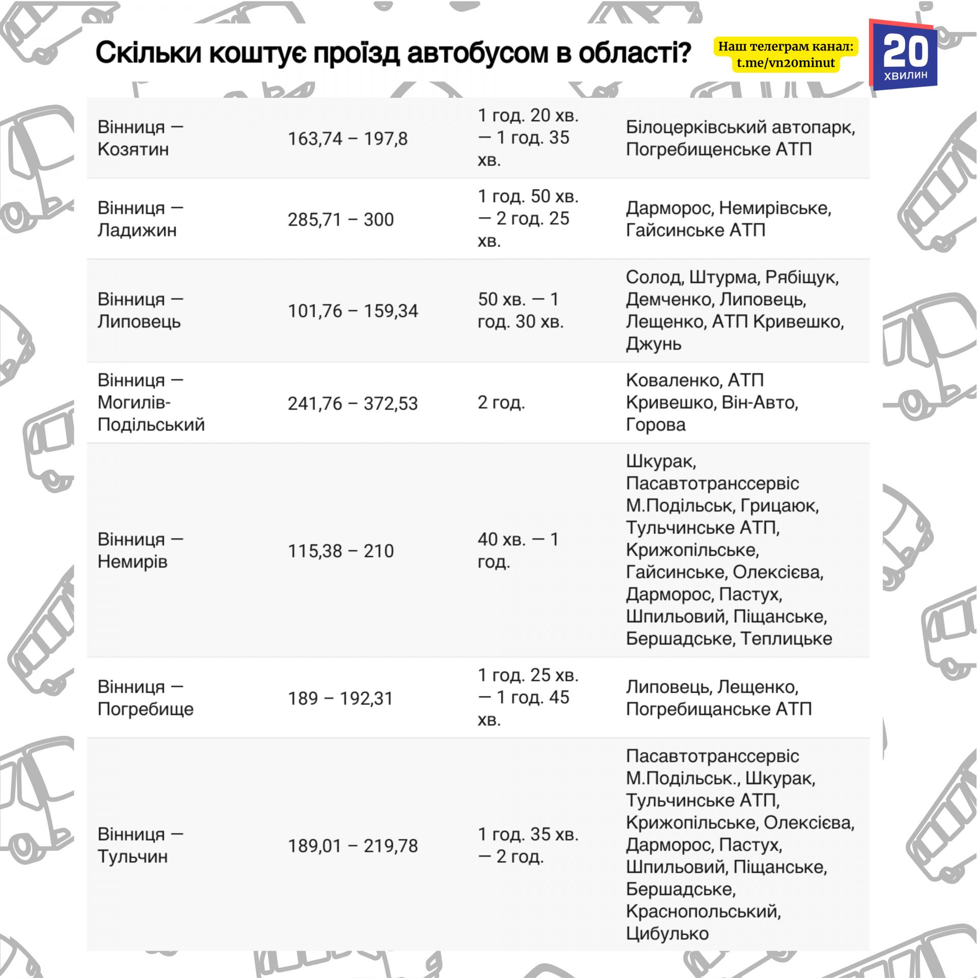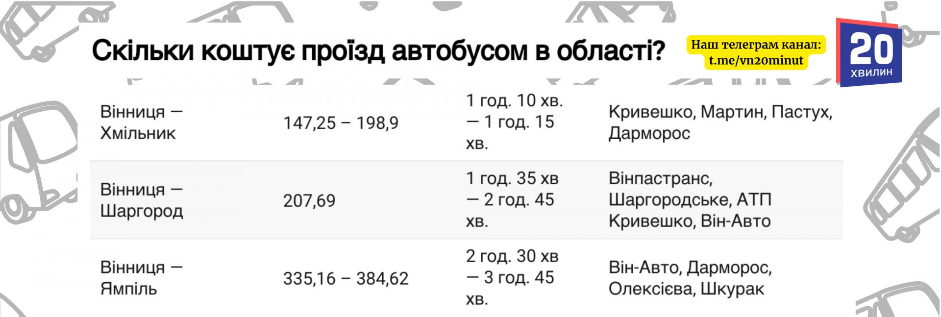- Ми вирішили дізнатися, скільки наразі коштує доїхати автобусом із Вінниці до міст в нашій області.