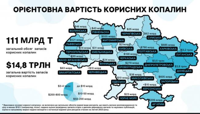 Вартість природних ресурсів України оцінюється в 14,8 трильйона доларів, зокрема надра Вінницької області мають цінність на суму 24 мільярди доларів. Про це повідомив Володимир Ланда, старший економіст Центру економічних стратегій (ЦЕС).