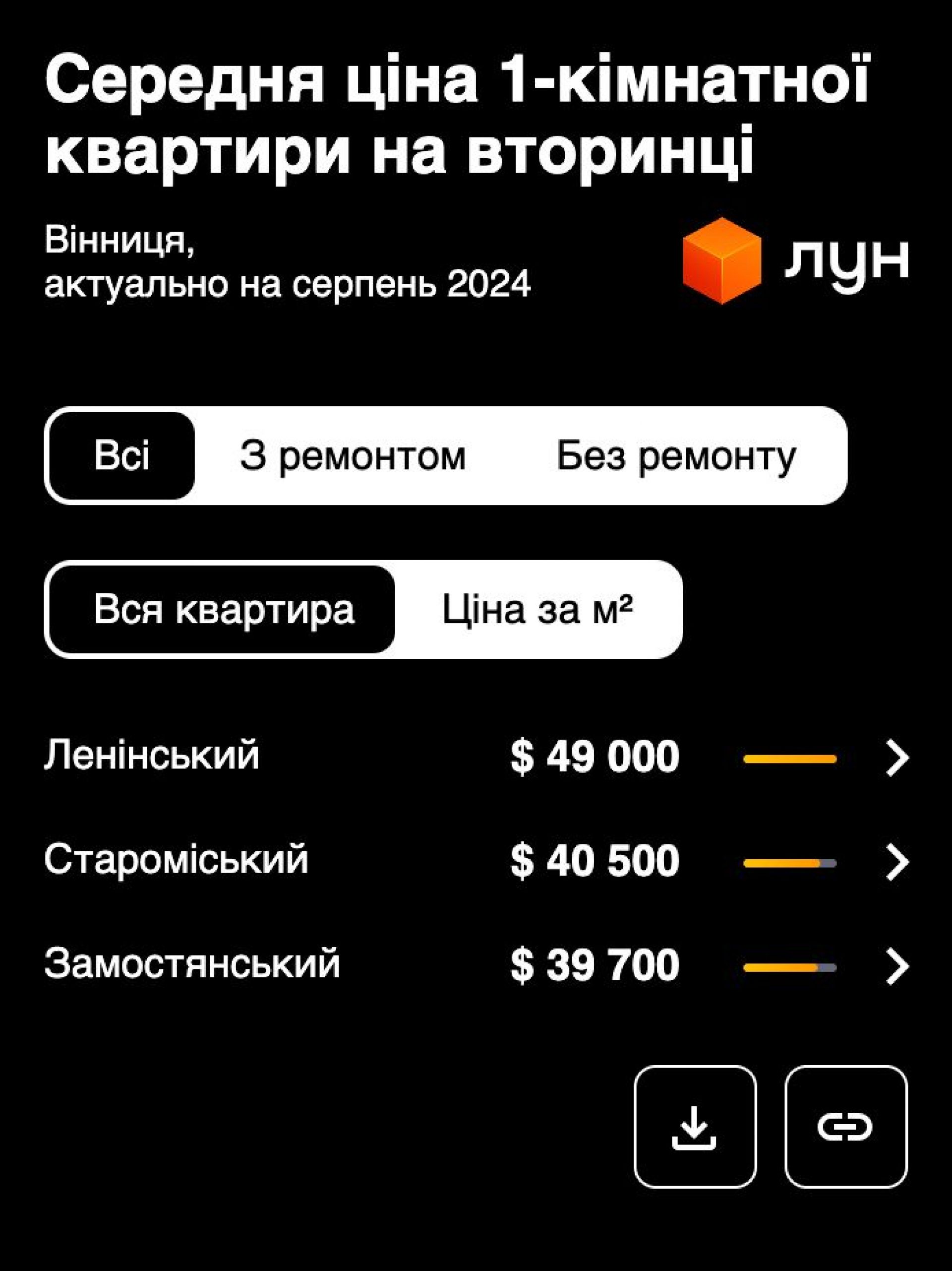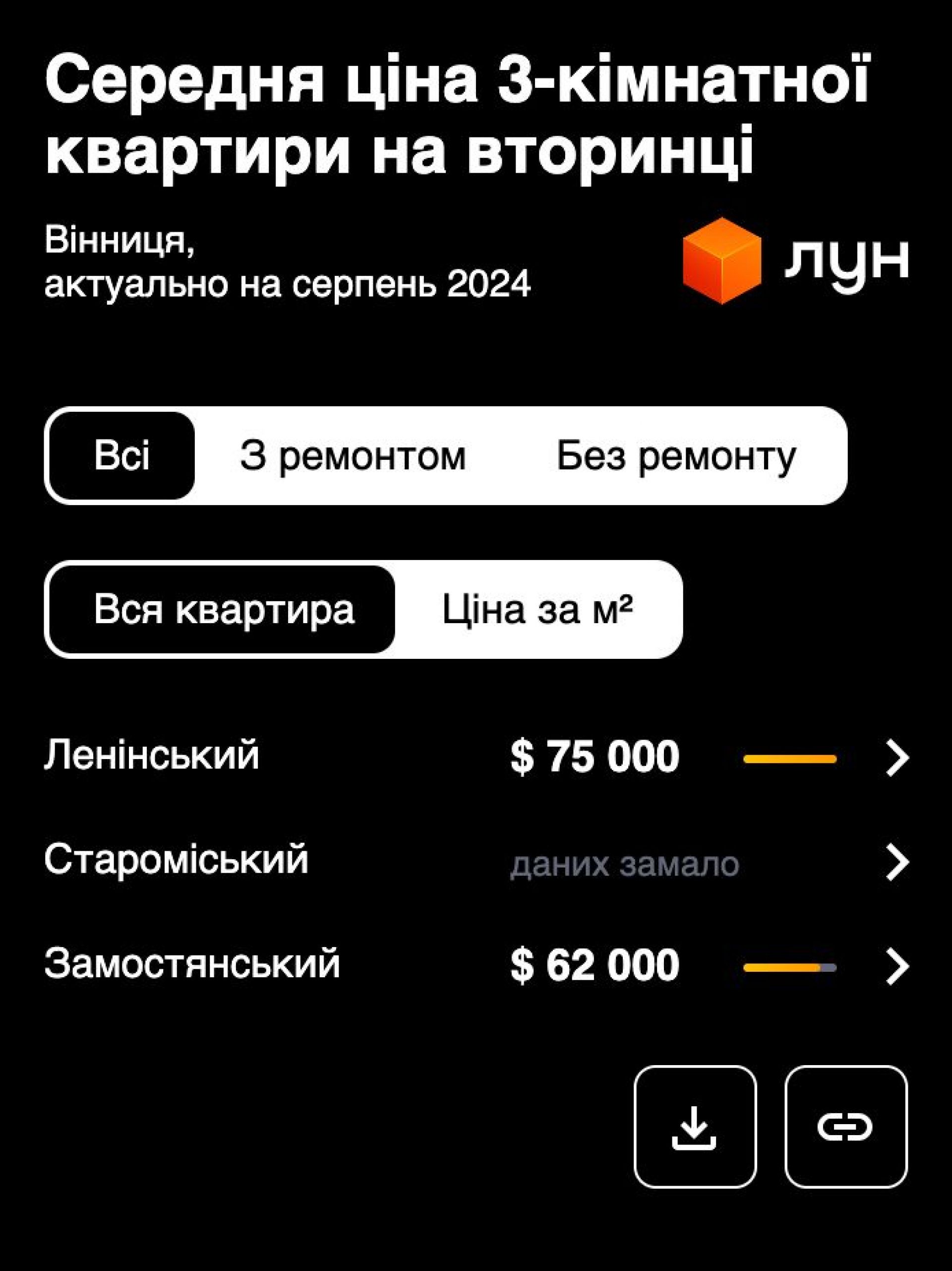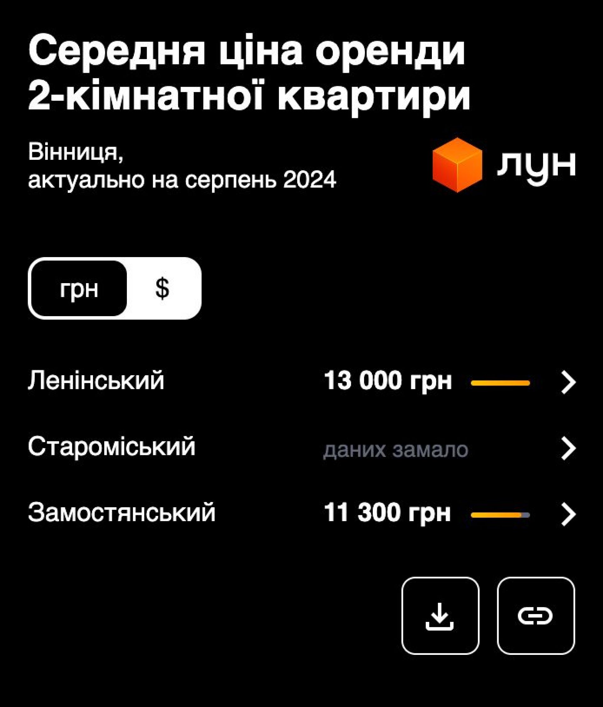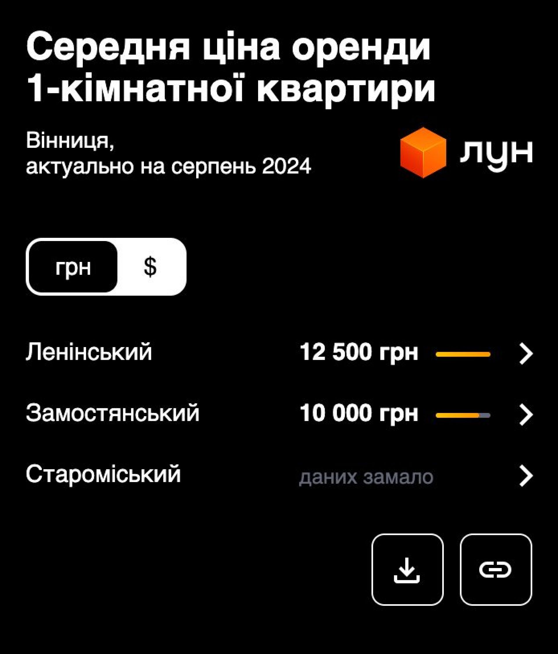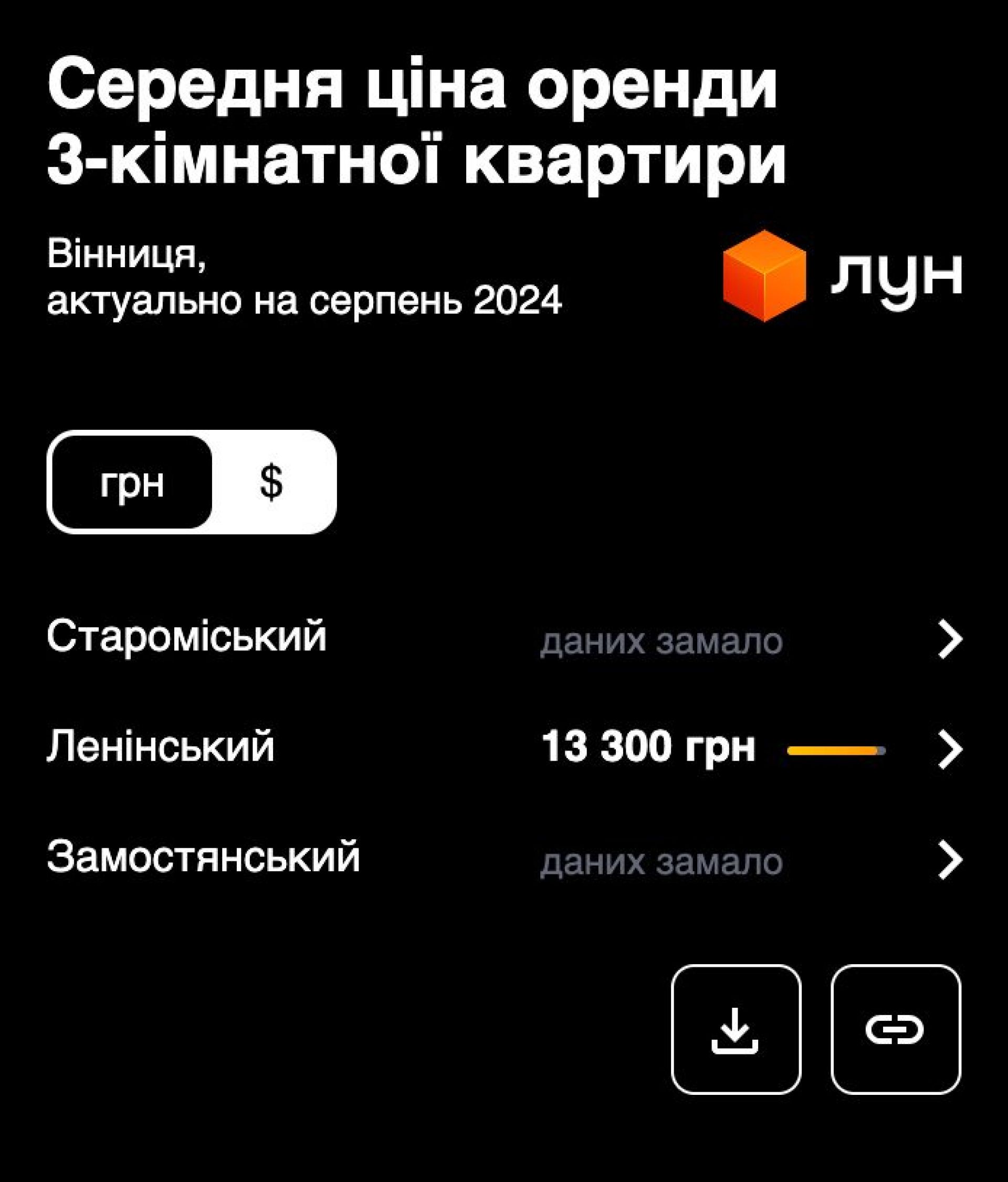 На сайті компанії ЛУН, що спеціалізується на створенні продуктів для продажу, купівлі та оренди нерухомості, зʼявилася статистика вартості житла у Вінниці.