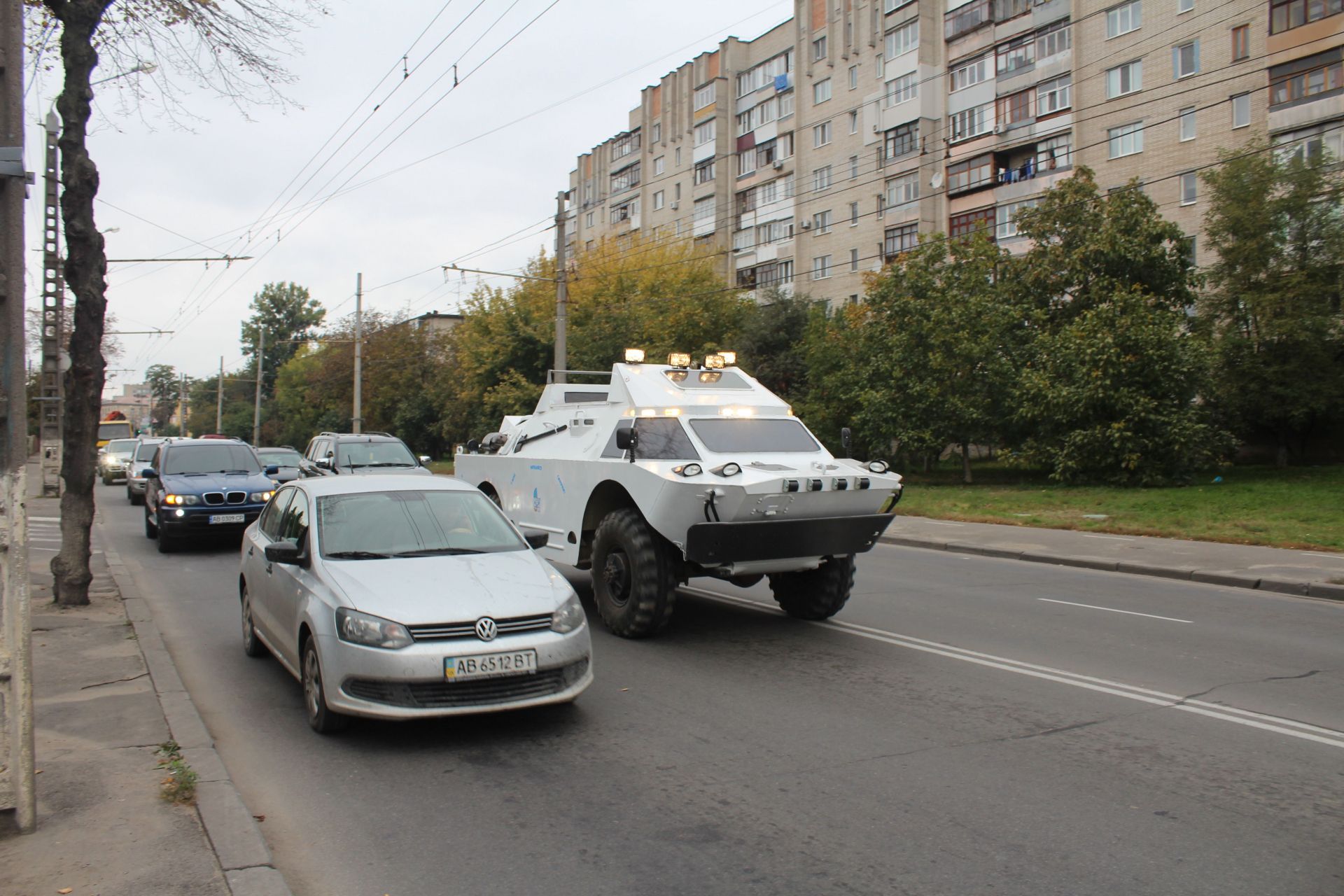 - Колона з 30 машин, серед яких був білий БТР, проїхала середмістям Вінниці.