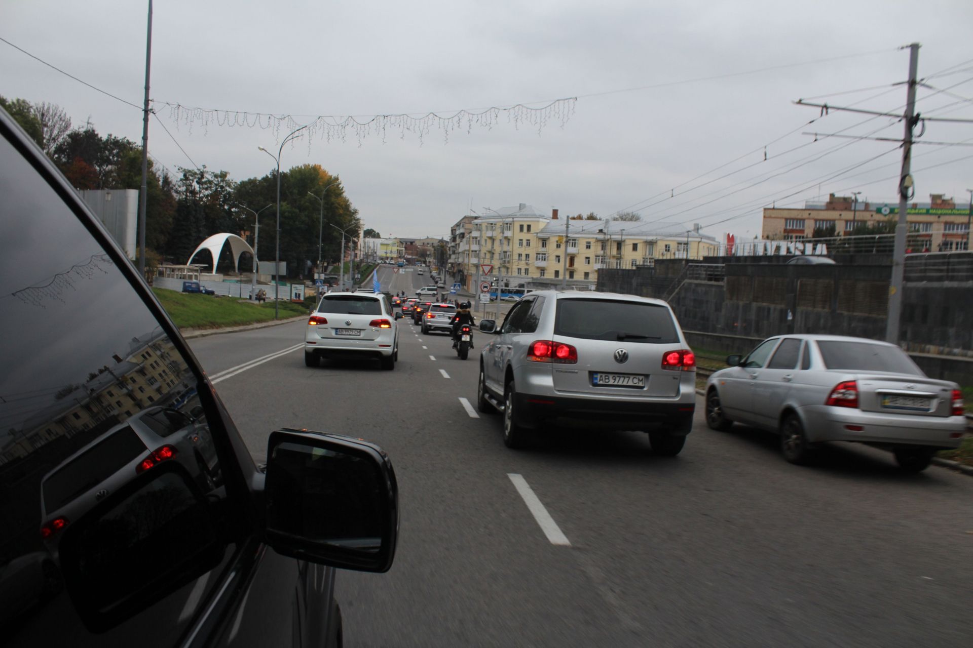 «По машинах!» — пролунало десь збоку та всі побігли в авто. Увімкнувши «аварійку» автоколона вирушила на Хмельницьке шосе, а потім поспіхом проїхала через закриту для приватних авто Соборну. Патрульні поліцейські, що стояли на в’їздах до центральної вулиці посміхалися вслід колоні — активісти розказали, що раніше попросили відкрити шлях Соборною у керівництва поліції.