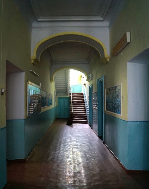 Будівля з жовтої цегли на кам’яному фундаменті нагадує сторінки романтичних європейських романів. Витончена башта з арковими вікнами додає споруді середньовічного шарму, а симетричний фасад і стримані лінії випромінюють шляхетність і гармонію.