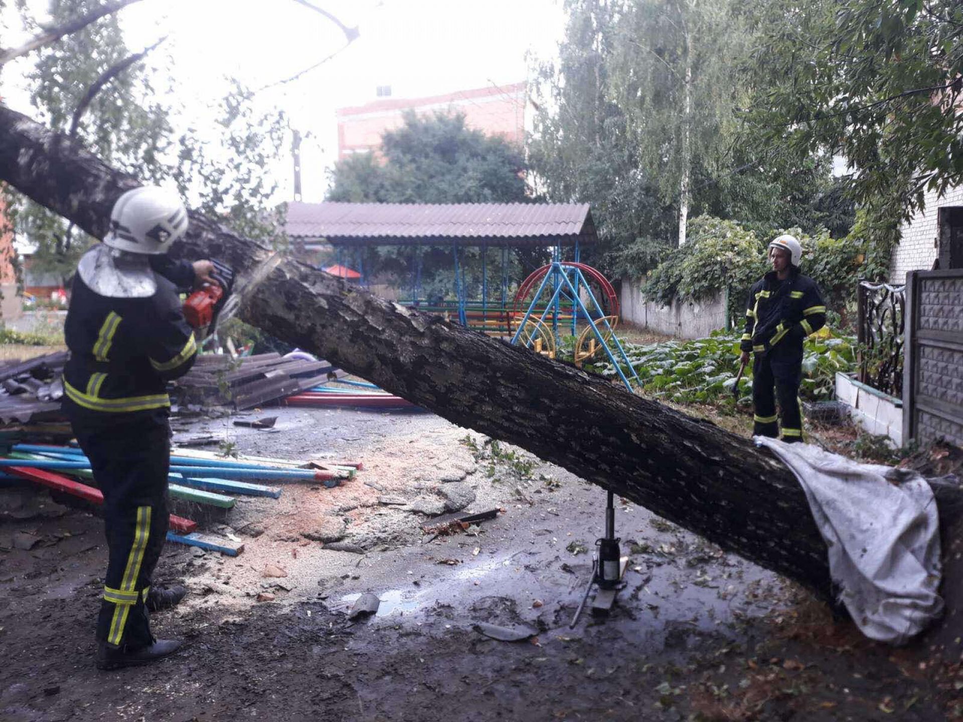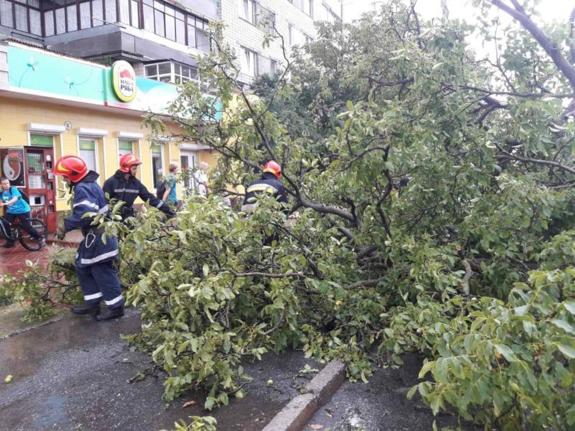 Тим часом, на вулиці Антонова негода пошкодила конструкцію балконної рами. Її довелося демонтувати бійцям ДСНС,
