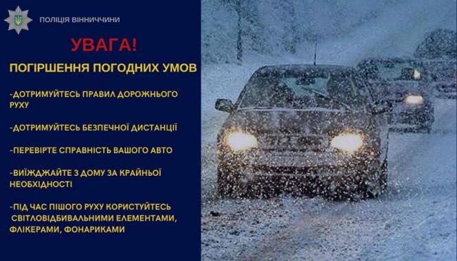 Рятувальники ДСНС Вінниччини наполегливо радять утриматися від поїздок 8 та 9 січня. Якщо ж виїзд неминучий, перевірте наявність у машині: