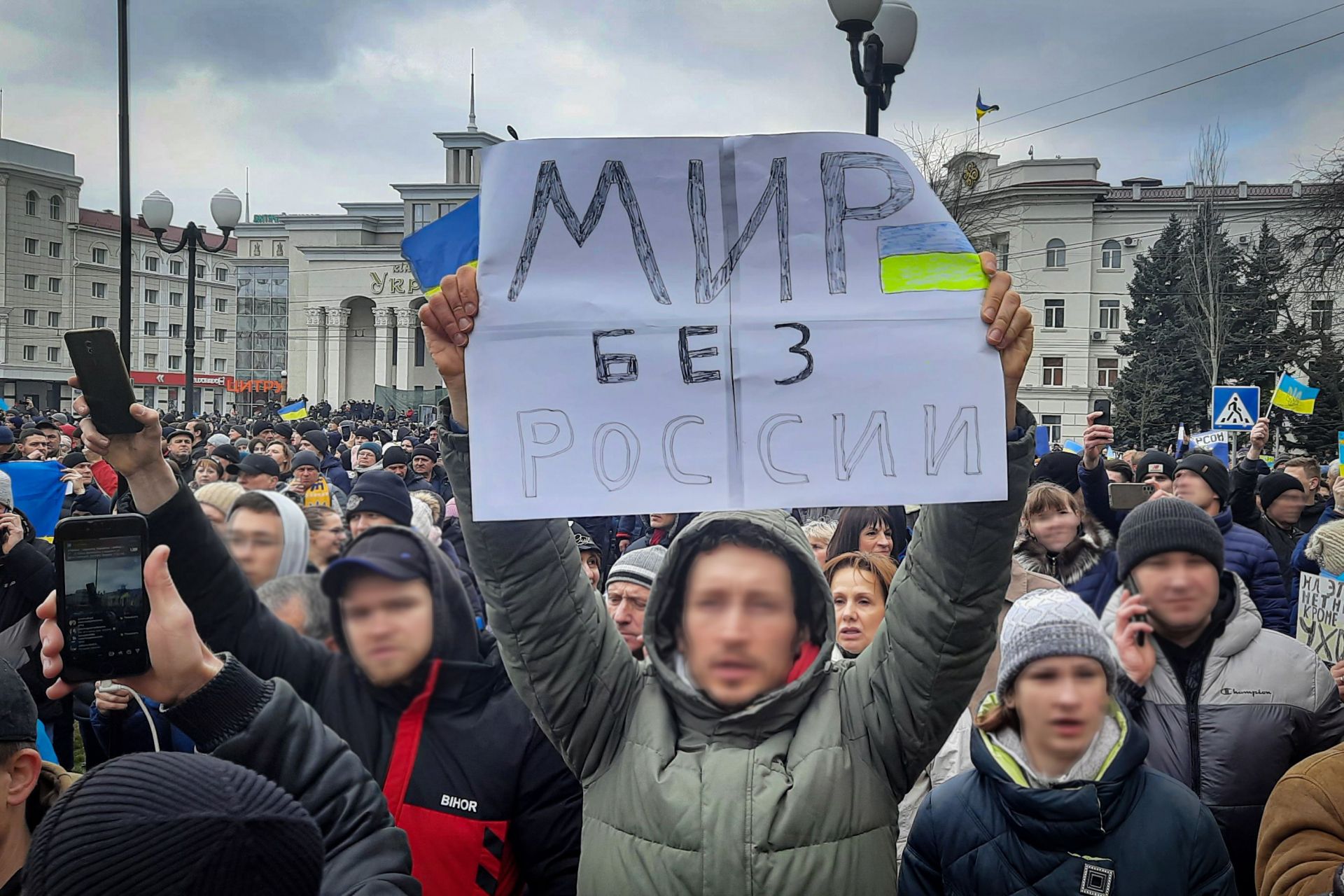 — Події в окупованому Херсоні, мітинги та супротив херсонців увесь світ побачив очима фотокореспондента Медіаплатформи «Вгору» Олександра Корнякова. Його фотографії з херсонських мирних акцій проти російської окупації облетіли відомі світові інформаційні агенції – Reuters, The Times, The Guardian, BBC, Aljazeera та багато інших, — зазначають організатори. — «Нескорений Херсон» — це фотоісторія про жагу до свободи сміливих та безстрашних херсонців, про їхній супротив російській окупації, що триває й досі.