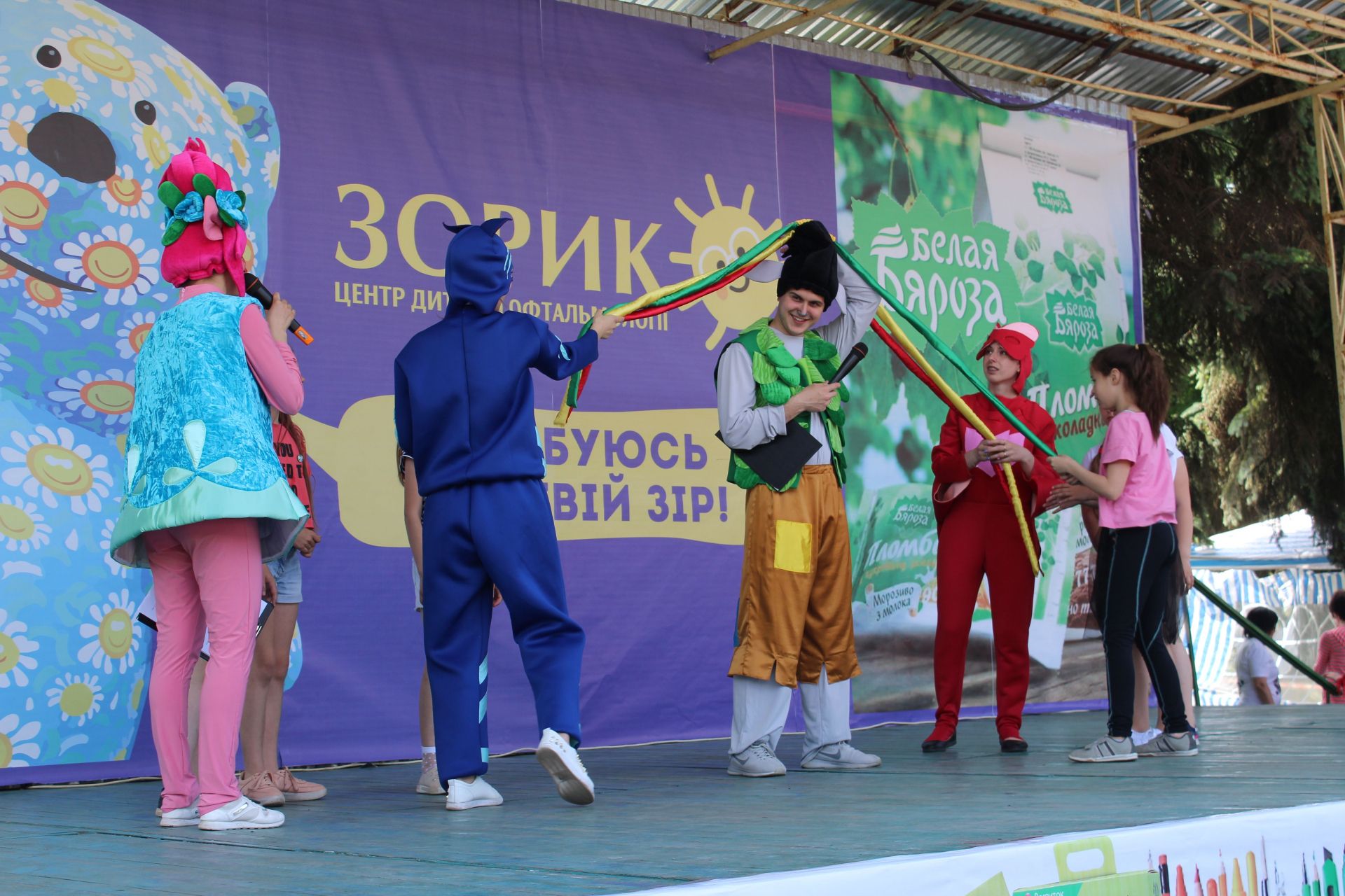 Та все ж, впоравшись учасники отримали подарунки від від Генерального партнера свята — Центру дитячої офтальмології «Зорик». Разом із “Зориком” також малювали на тему “Літо очима дітей”, весело танцювали та заплітали різнокольорові гігантські коси . Під час усіх ігор,«Зорик» нагадував про те, що перевіряти зір дитини необхідно навіть при відсутності скарг на очі, щоб вчасно виявити та зупинити порушення зору.