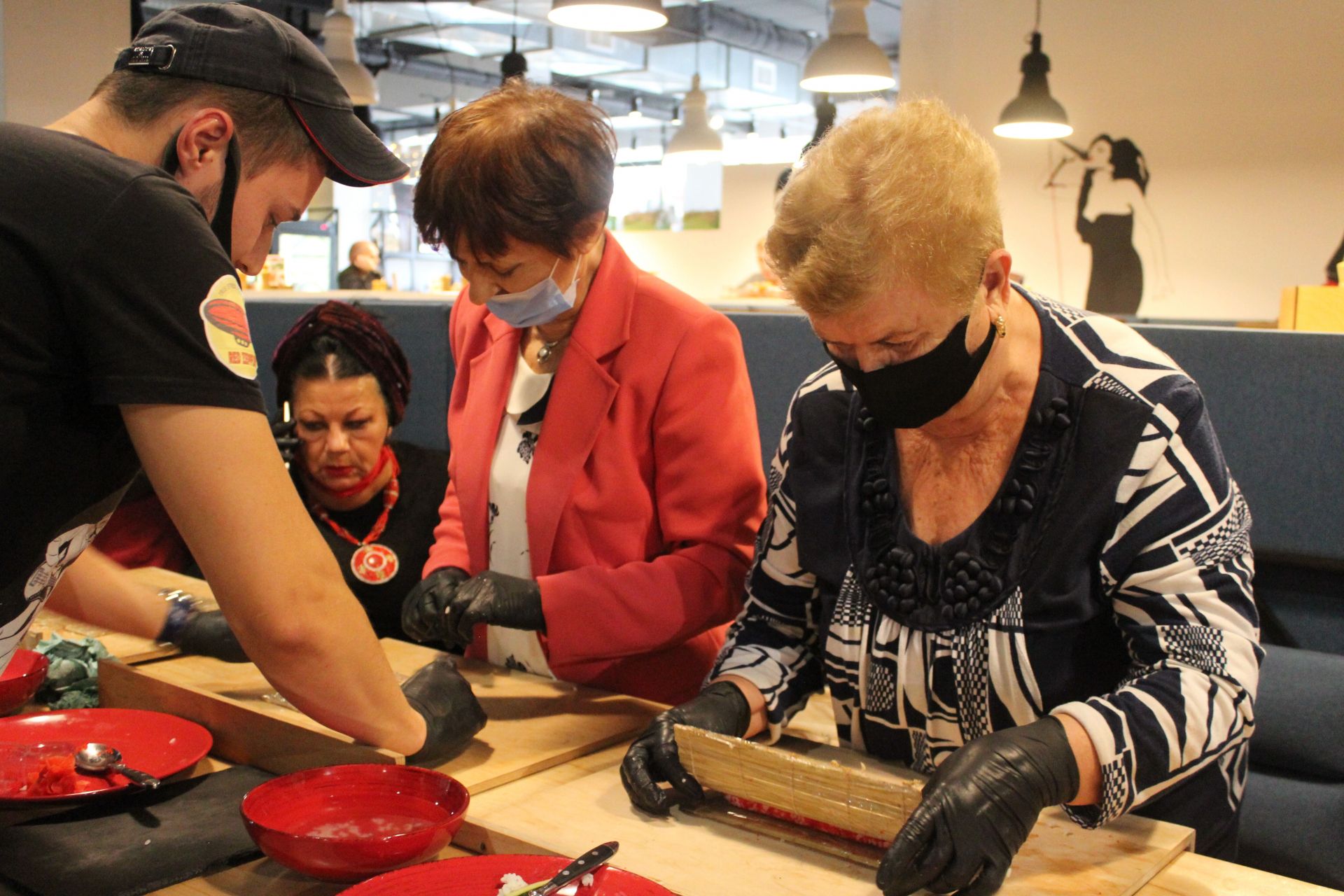 — Оскільки сьогодні день людей похилого віку, то у мене було завдання придумати для них щось веселе, класне і креативне. Мені на думку прийшло зробити їм майстер-клас з приготування суші, бо дуже багато хто з них навіть не коштували їх, — говорить психологиня територіального центру соціального обслуговування міста Вінниця Дарина Добряк. — У такому віці вони говорять: «Навіщо мені їсти рибу разом з рисом?». Я дуже переймалася питанням того, що я не зможу знайти місце, де можна організувати цей майстер-клас. Адже територіальний центр — це державна служба, і у нас не було великого бюджету, щоб організувати цей майстер-клас самостійно. На щастя, Валерій Сиверчук дав можливість моїм дівчатам приготувати і насолодитися тим творінням, яке вони зроблять у його закладі.