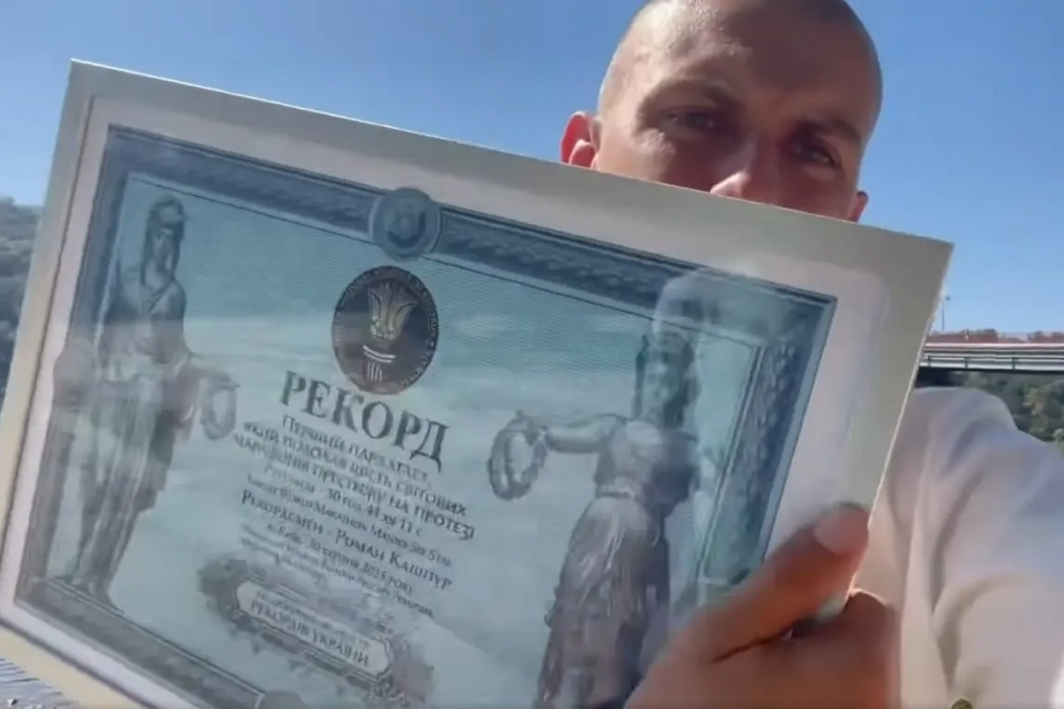 Ще один його рекорд — протягнув на протезі 16-тонний літак на 6,4 метра, зробив це за 44 секунди. Цей рекорд встановив на аеродромі у Чугуєві Харківської області у 2021 році. Зробив це у пам’ять про свого командира легендарного розвідника Олександра Колодяжного. Саме з цього аеродрому важкопораненого командира доправляли літаком у Київ на лікування. Тим само рейсом перевозили Романа Кашпура.
