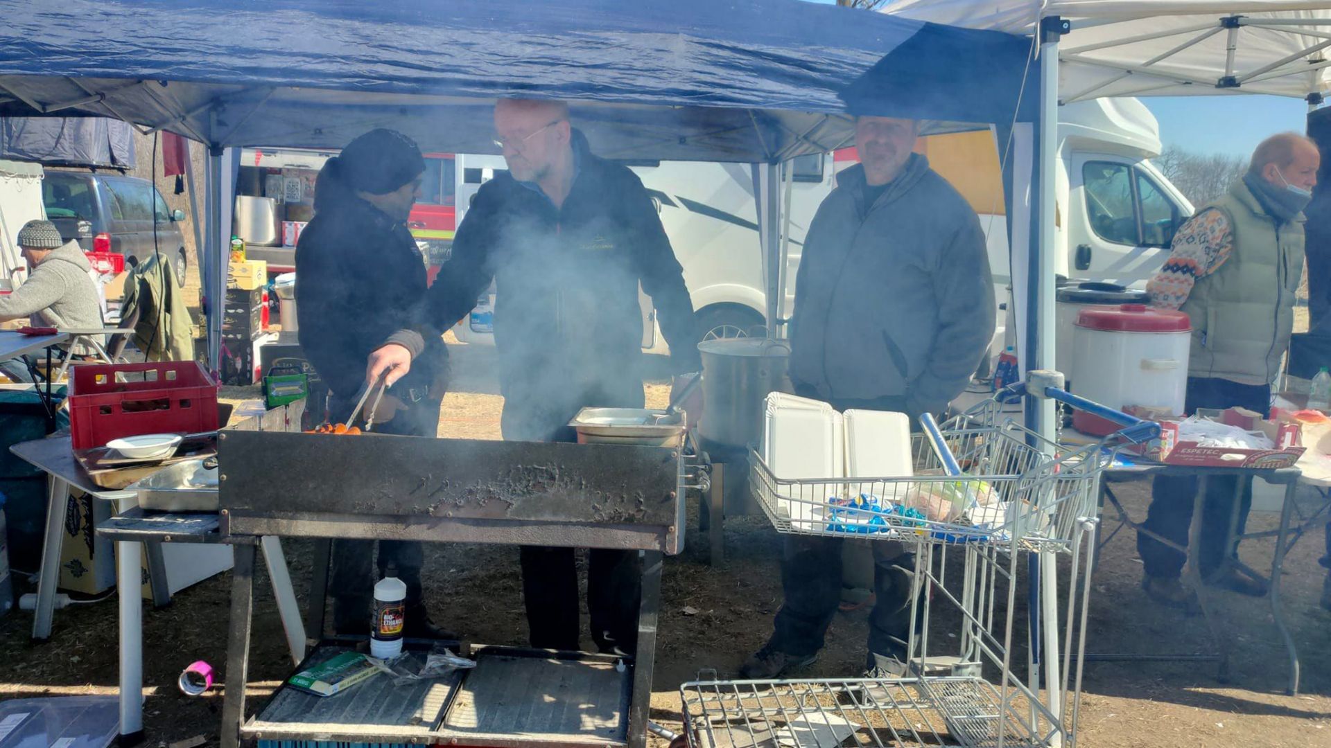 «Центр для біженців з України в польському місті Пшемишль. Тут можна перепочити з дороги, поїсти та взяти все необхідне для перших днів життя. Все безкоштовно. Волонтери з Польщі та інших країн готують для українців гарячі страви просто неба. Все смачно (перевірила на собі), — розповідає Ольга Бобрусь. — Жінкам з дітьми, стареньким людям пропонують житло. Польщі та полякам великий респект за підтримку. Українців прошу бути вдячними та просто не забувати казати «Dziękuję bardzo».