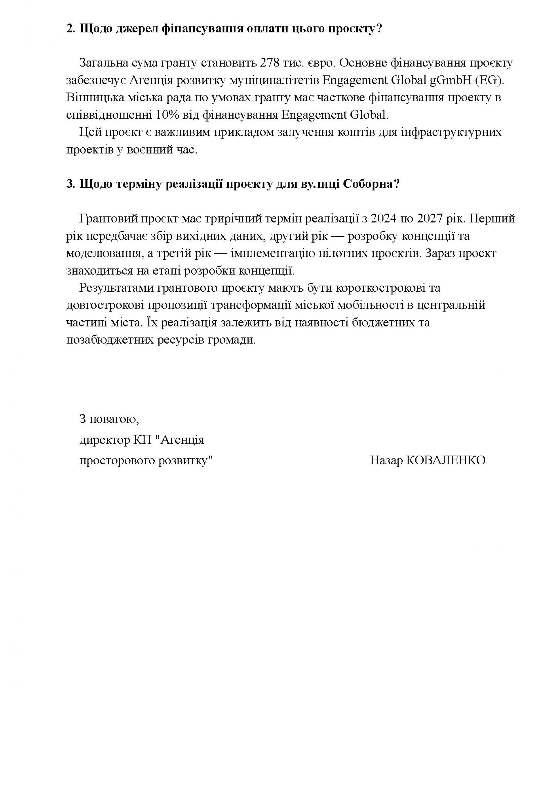«Зараз проект знаходиться на етапі розробки концепції. Результатами грантового проєкту мають бути короткострокові та довгострокові пропозиції трансформації міської мобільності в центральній частині міста. Їх реалізація залежить від наявності бюджетних та позабюджетних ресурсів громади», — пишуть у відповіді на інформаційний запит.