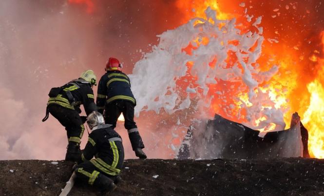 Надзвичайники Вінниччини показали кадри гасіння пожежі після влучання в об'єкт інфраструктури