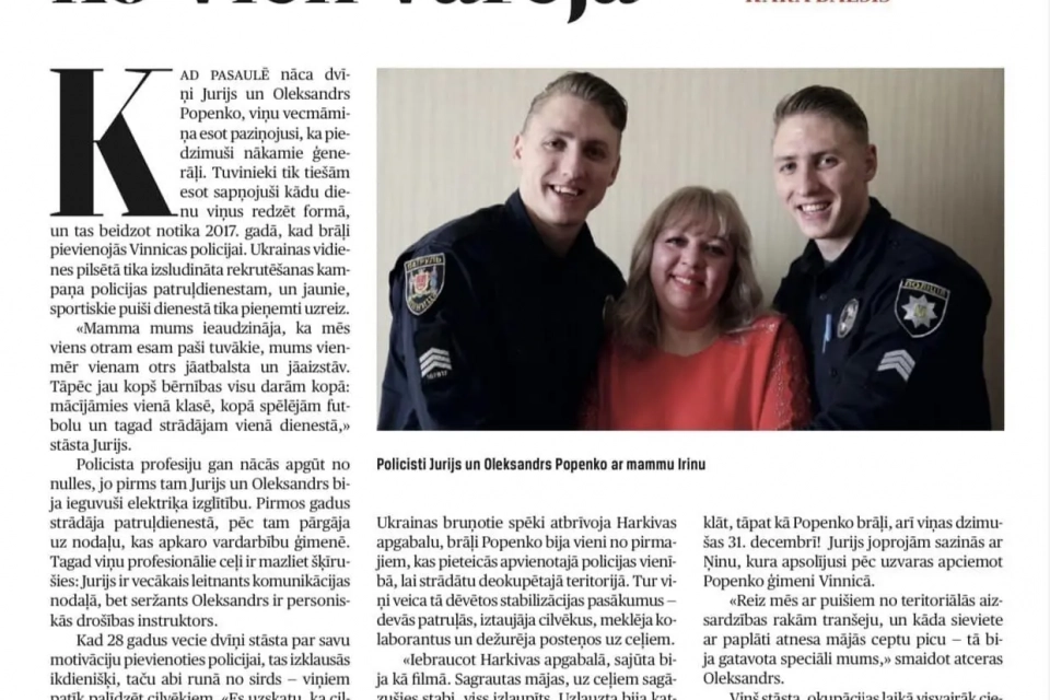 Про вінницьких поліцейських братів-близнюків Юрія і Олександра Попенків написали у латвійській газеті