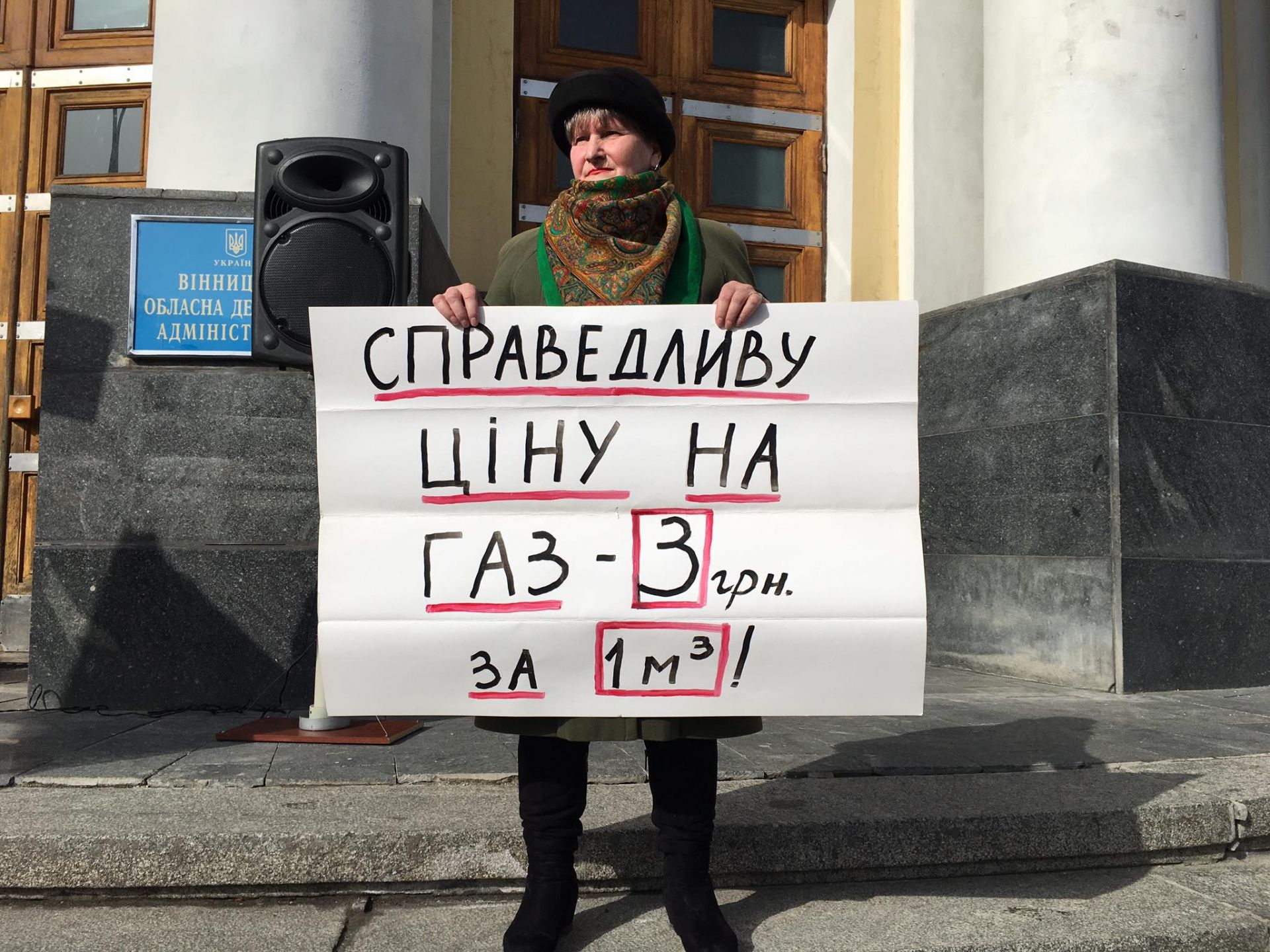 Сьогодні, 25 лютого, під стінами ОДА людно. Зібралося близько сотні людей. Деякі одягнені у незвичні костюми, у деяких в руках плакати. На одному із них напис: «Справедливу ціну на газ — 3 гривні за 1 метр за кубометр».