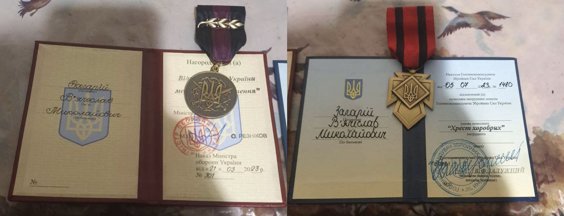В’ячеслав відзначений почесним нагрудним знаком Головнокомандувача ЗСУ «Хрест хоробрих» та іншими нагородами.