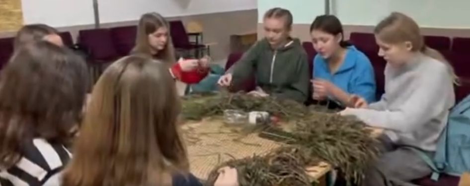 Учні цього закладу теж навчилися робити кікімори. Виготовляють їх за підтримки волонтерки Наталії Сідецької. Колективно торочать мішковину, далі напинають її на основу камуфляжу. Необхідні розміри замовляють військові.