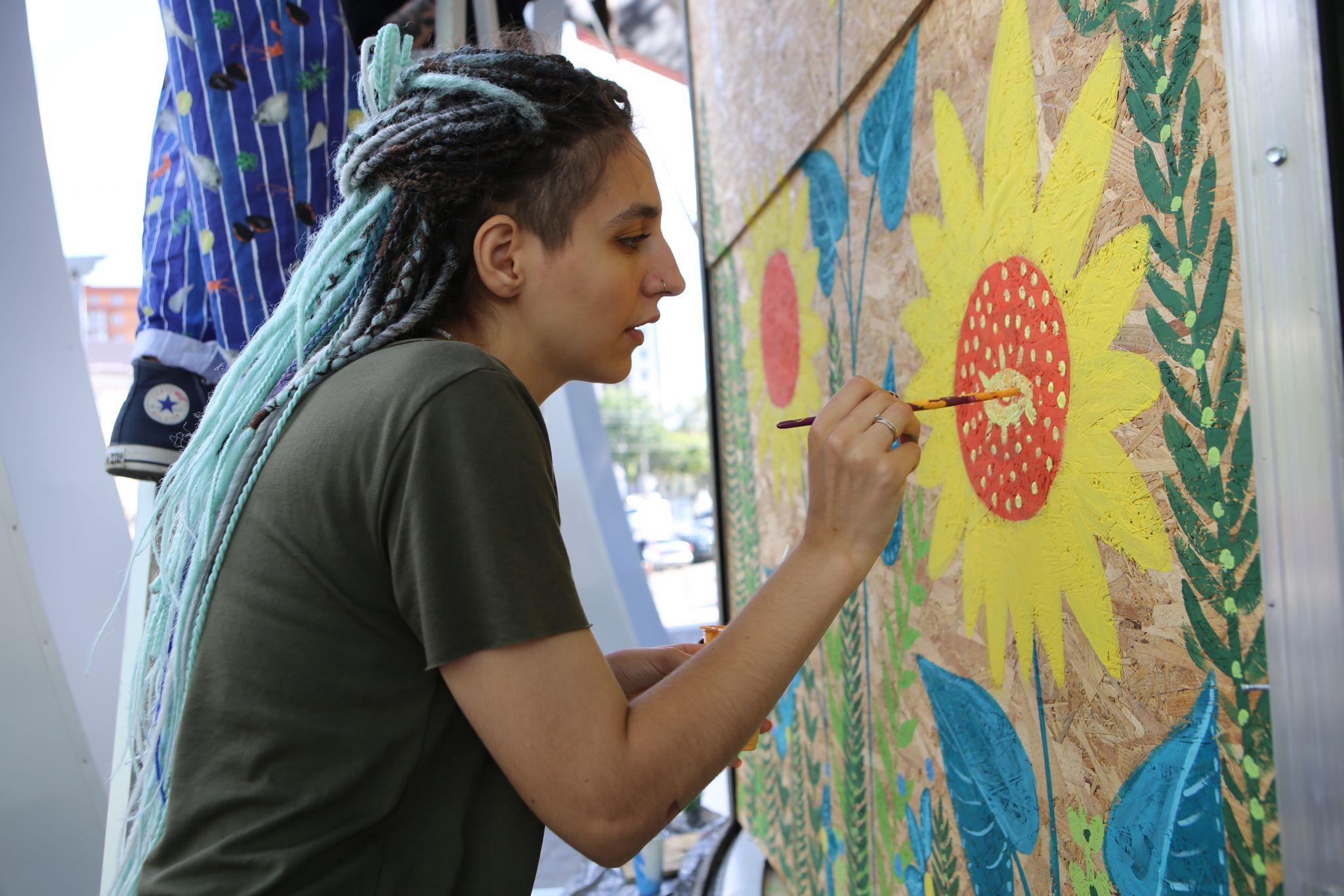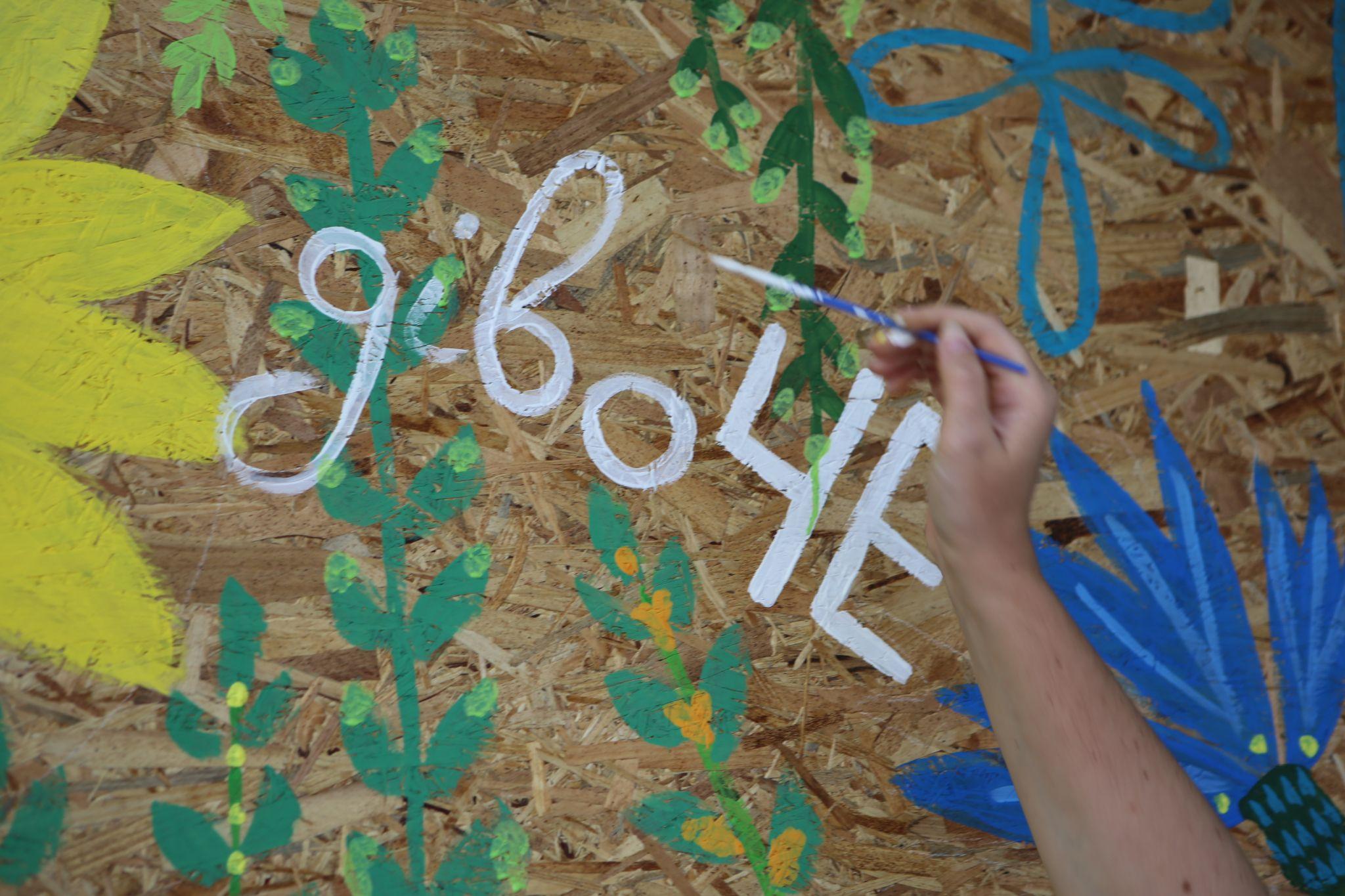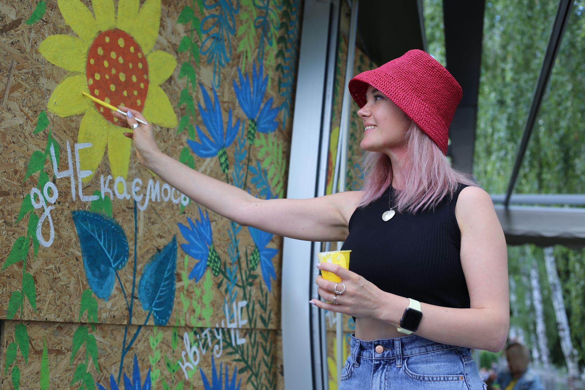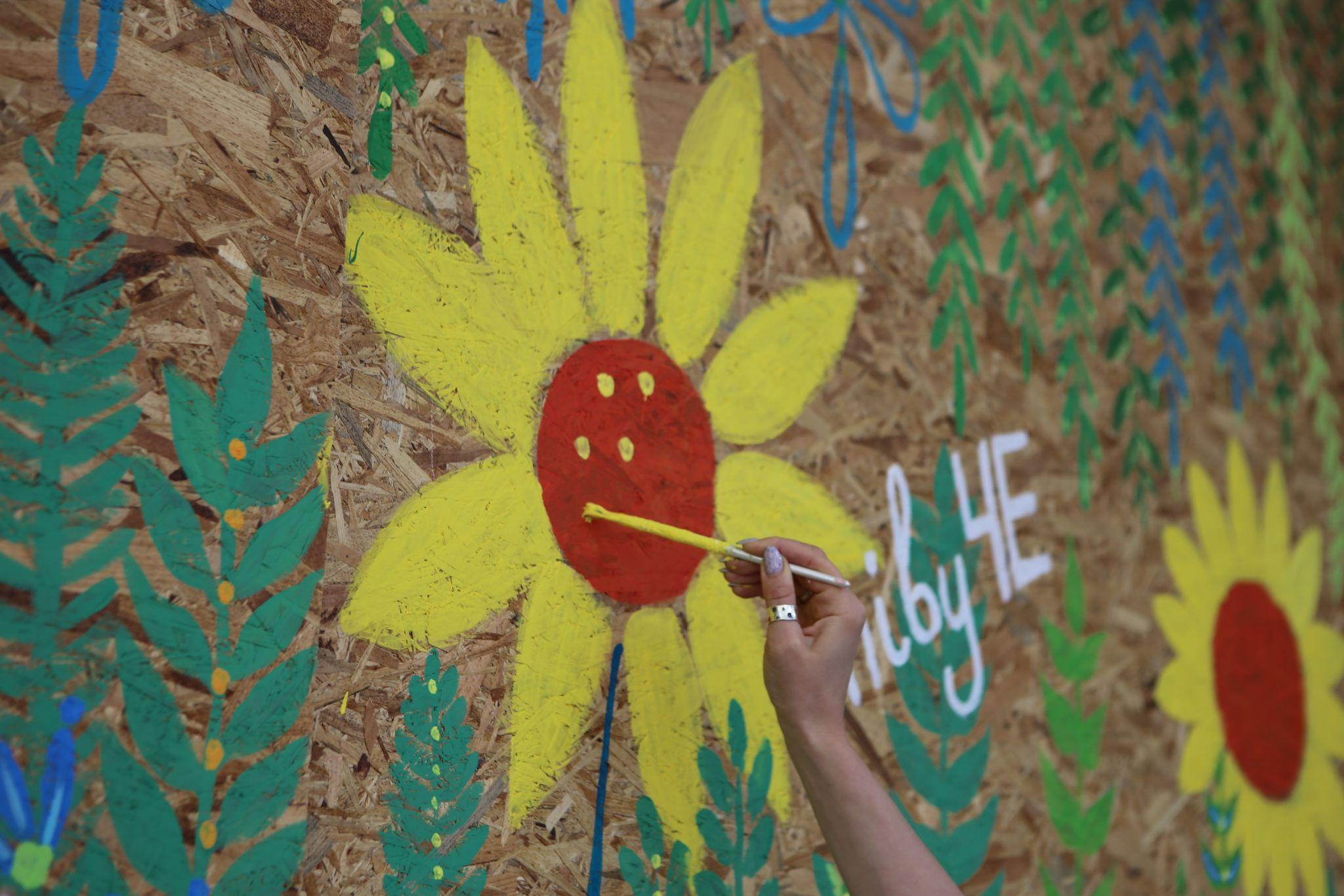 — Ми вигадали собі, що кожен намальований сонях символізує знищений командний пункт росіян. А кожен листочок, а їх тут дуже багато, це полеглий на нашій землі орк. Так, знаєте, малювати справді веселіше, — ділиться враженнями учасниця ініціативи Катерина Калашнікова.