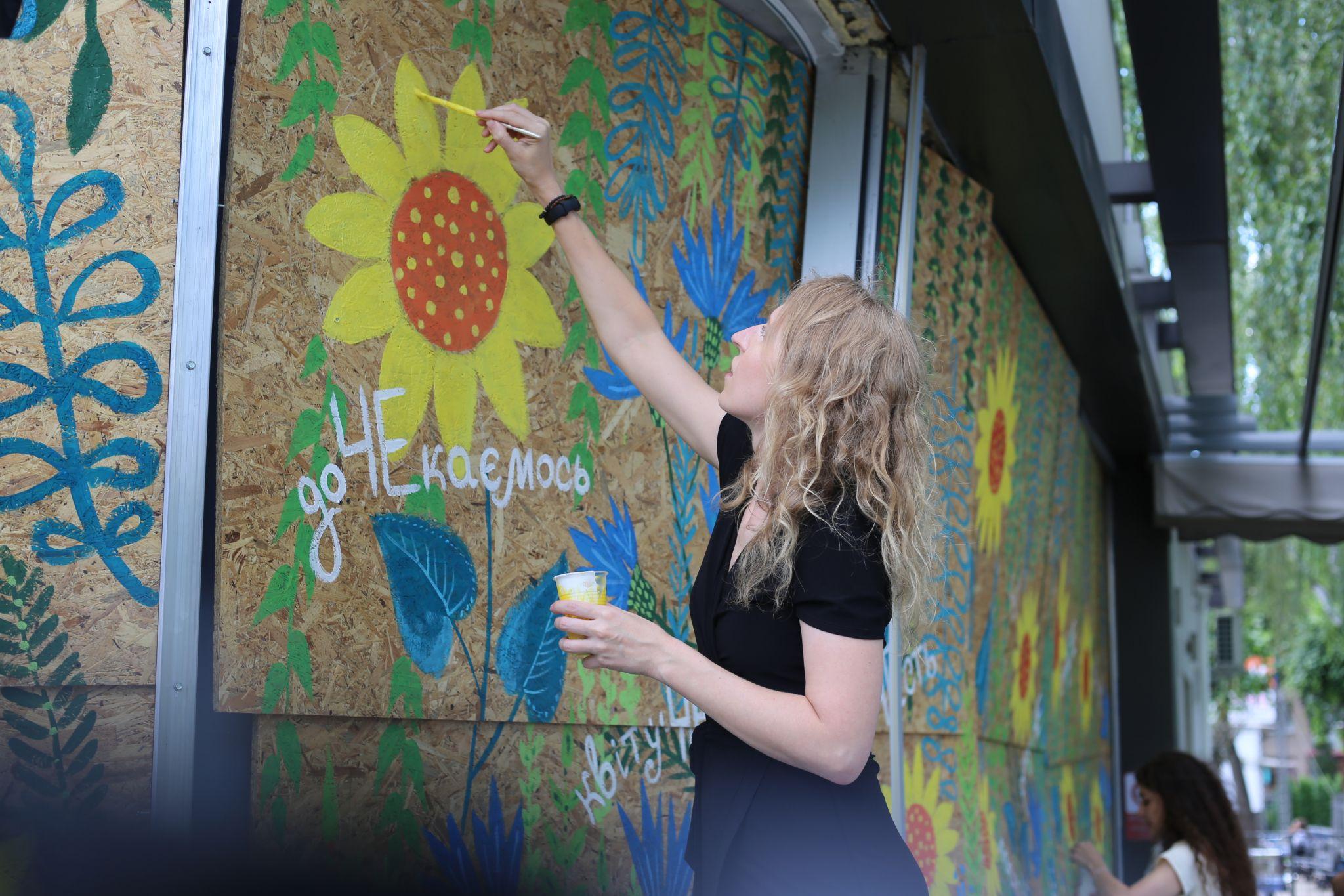 - Один із постраждалих закладів відновлюють за допомогою розмальовування дерев’яних плит, які встановили замість потрощених вибуховою хвилею вікон. Вінничанки, які долучилися до ініціативи, розповіли, навіщо вони це роблять.